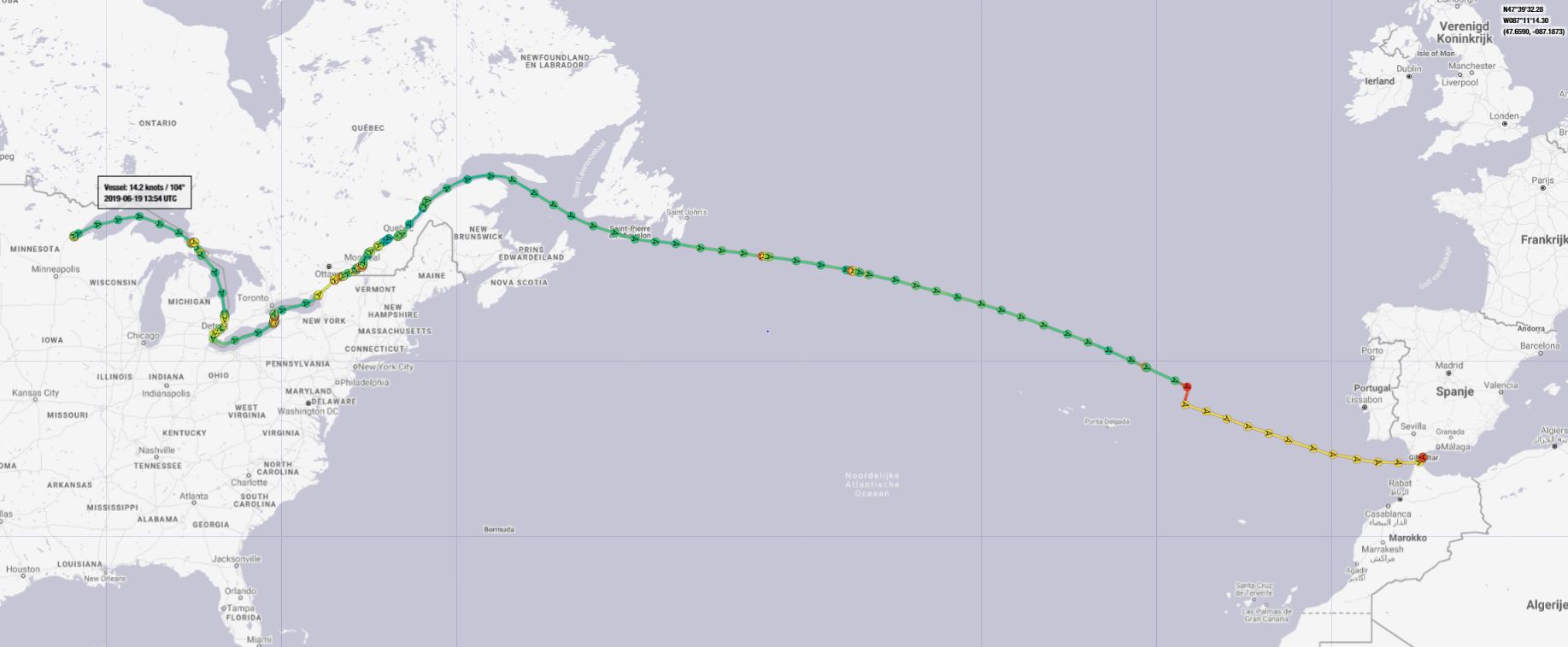 Captain D. Ciacu of the MV Alamosborg: “We left the port of Duluth after loading 11.000 tonnes of sugarbeetpulppellets for ADM and set direction to the port of Casablanca. ETA: July 25th.”