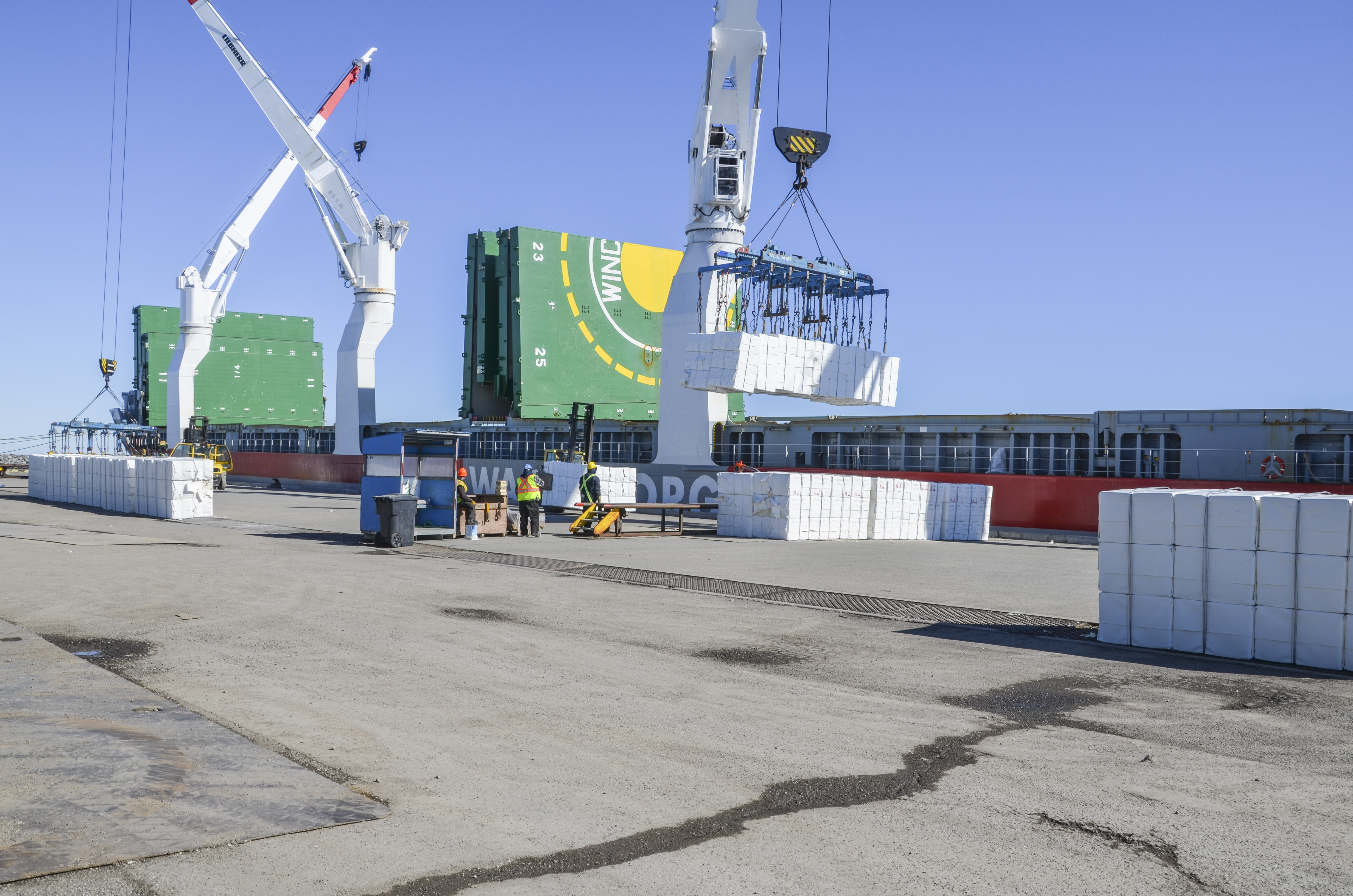 Rayonier Advanced Materials is exporting about 350.000 40ft containers and 200.000 tonnes of breakbulk on an annual basis. “Our breakbulk volume is originating from our location in Matane.”, continues Marc. “Back in the days, we did not have a contract-based relation with Wagenborg. We only did some spot charters to the Far East, especially during winter time. Now, about twenty years later, Wagenborg is responsible for a monthly shipping line of about 150.000 tonnes of pulp from the US East Coast to Korea and China.”, states Marc.