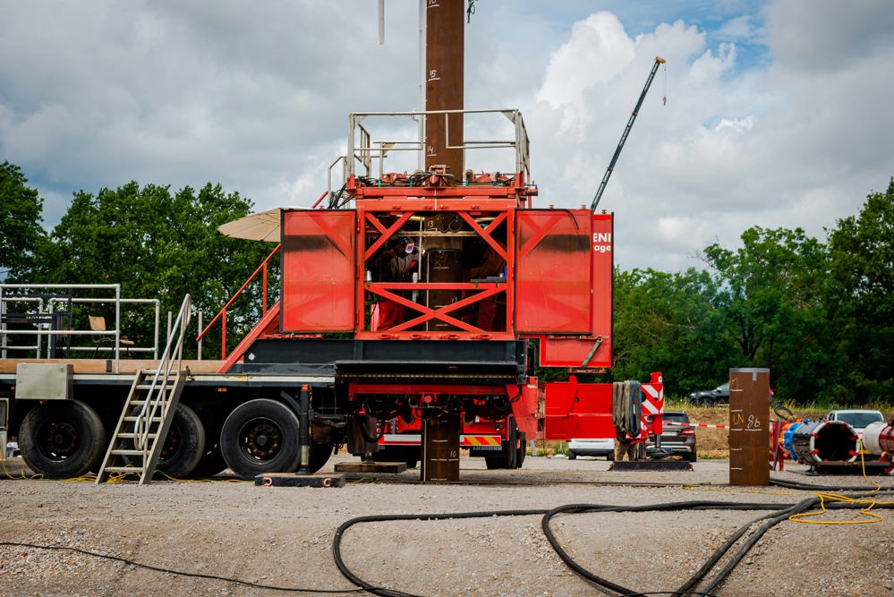 The pipes also had to be driven exactly parallel to each other. Bruins continues: "Soon there will be a drilling tower above the pipes to carry out the drilling. Such a tower is not very maneuverable. By stacking the three pipes exactly parallel to each other, it will be much easier for the customer to move the drilling derrick from one conductor to another".