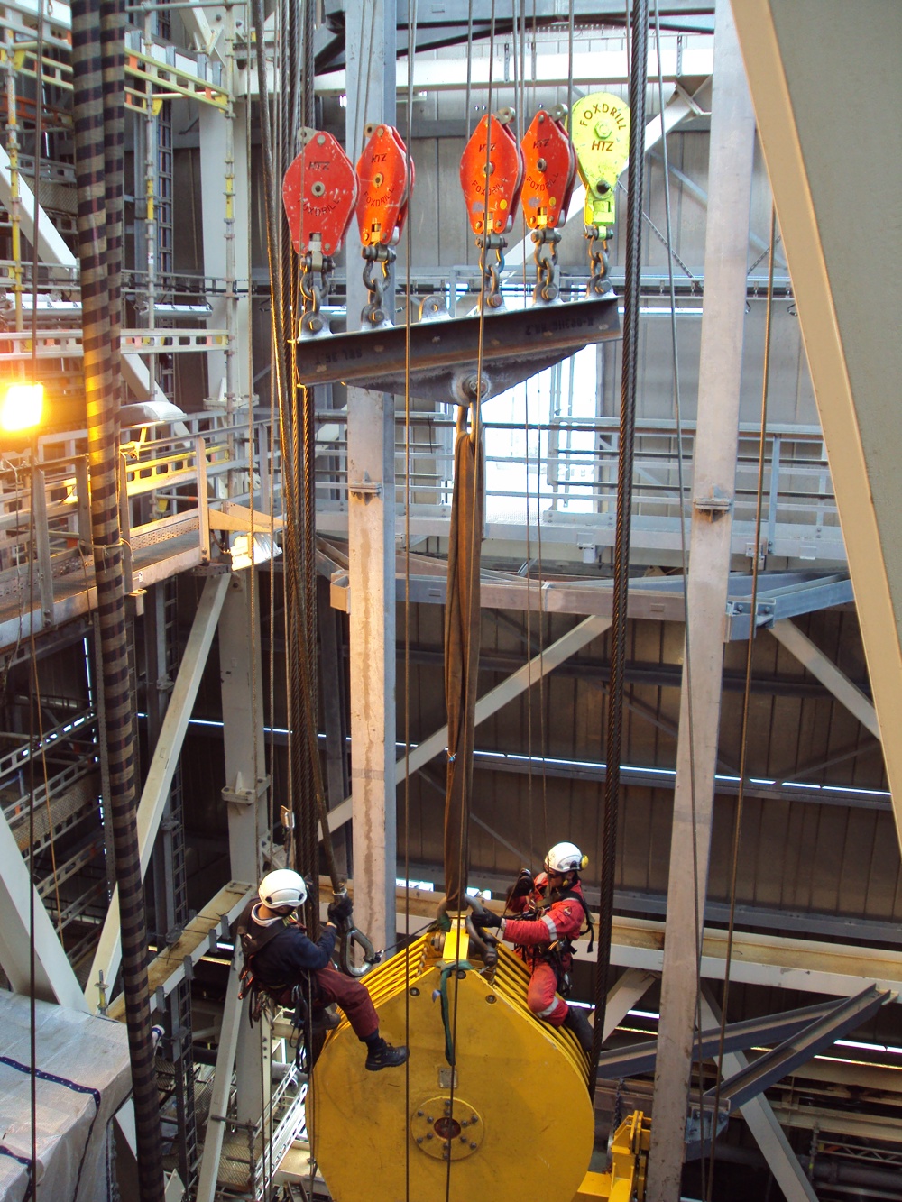 For the execution of repair and modification projects we have a variety of equipment to choose from, such as ultra-light rigging, floating gin pole, winches, and netting systems. For complex projects we are able to engineer new solutions, and train our people with the proposed solutions on our in-house test mast and training facility.
