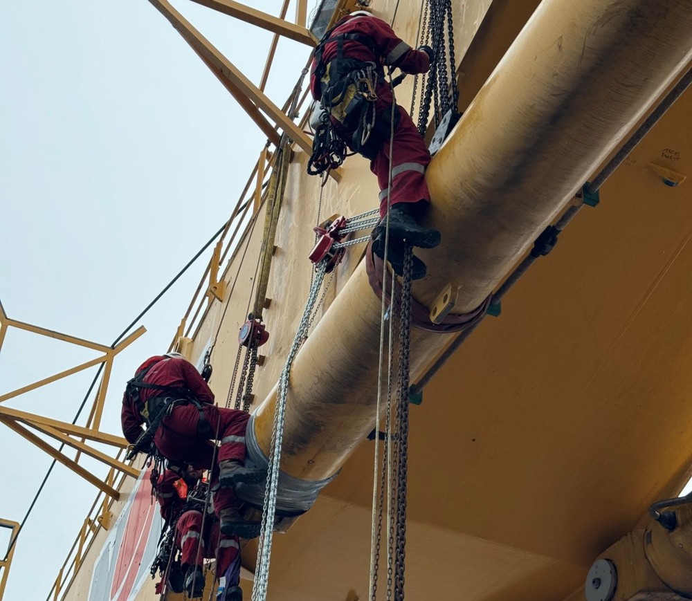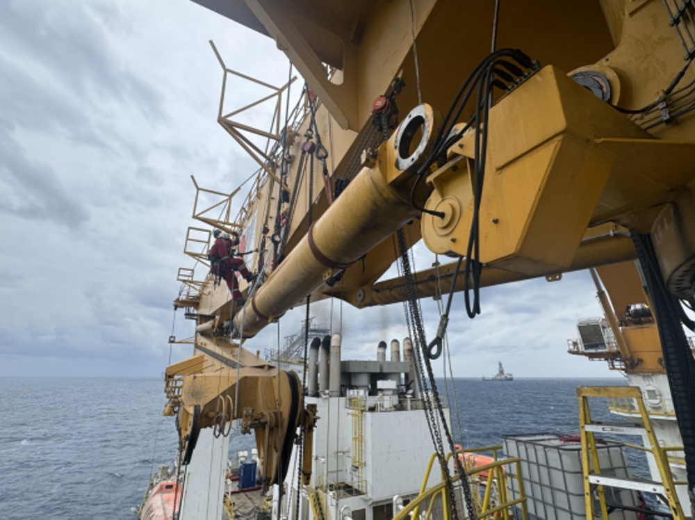 Wagenborg Foxdrill came up with an ingenious offshore rope access solution. This involved dismantling the main boom cylinders of the knuckle boom crane while the drillship remained in operation.