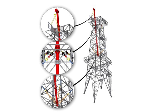 The floating ginpole is a modular lifting mast consisting of connectable segments, each 4 meters long. Thus any desired configuration can be built to carry out a customized lifting solution.