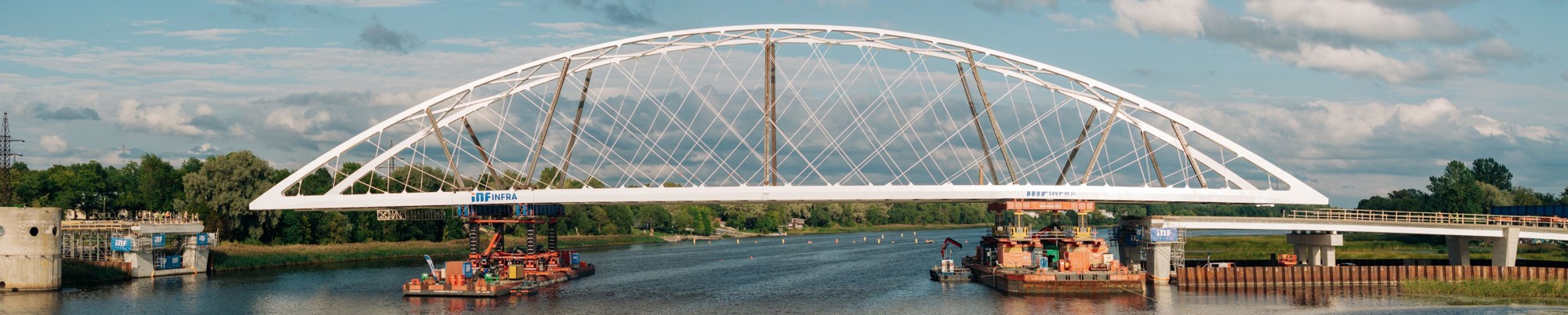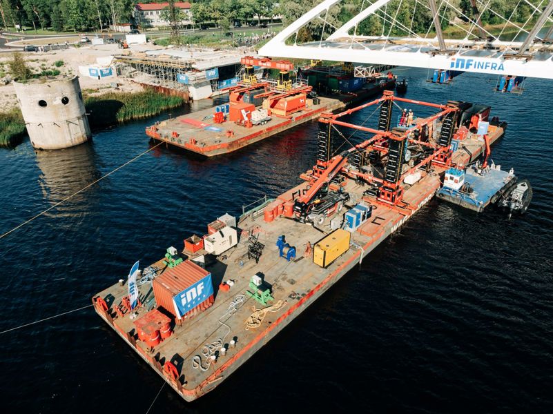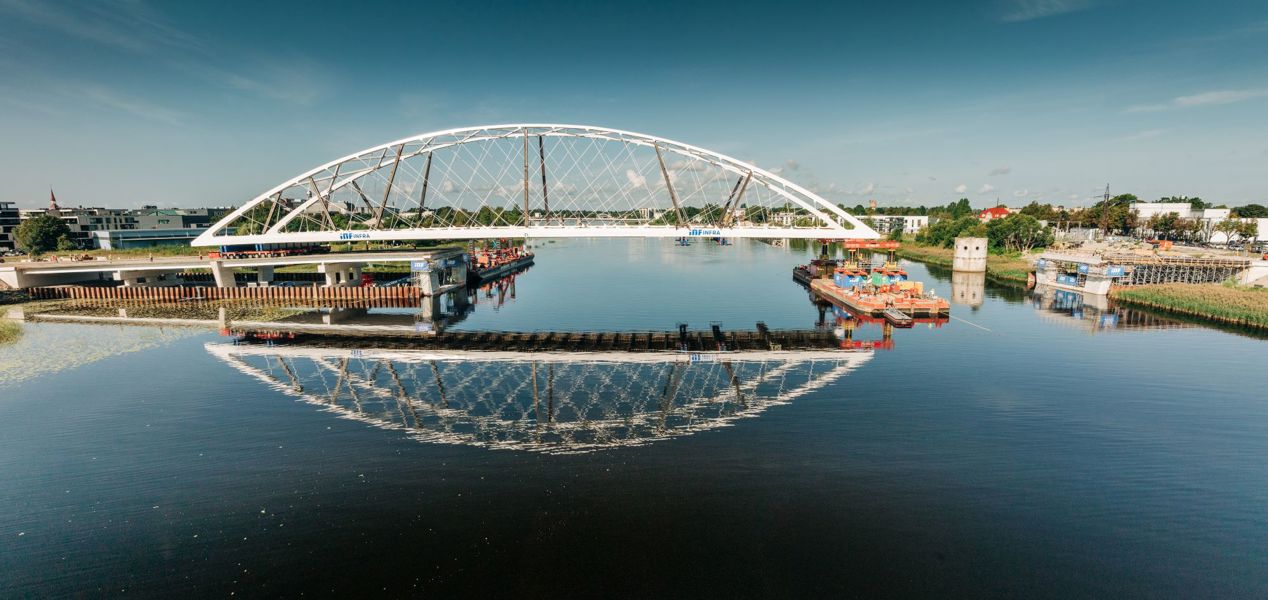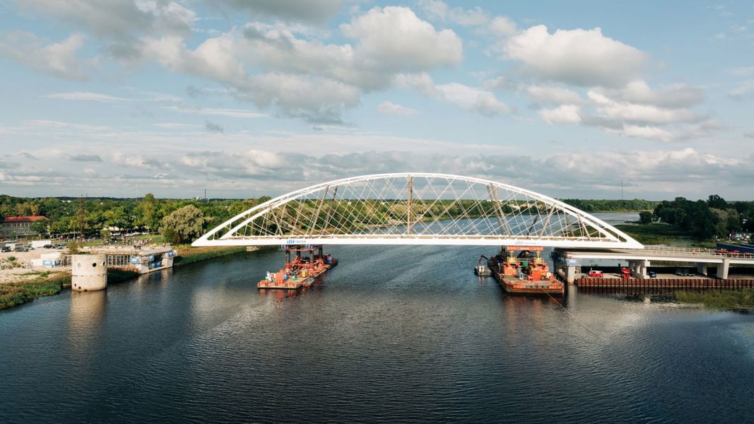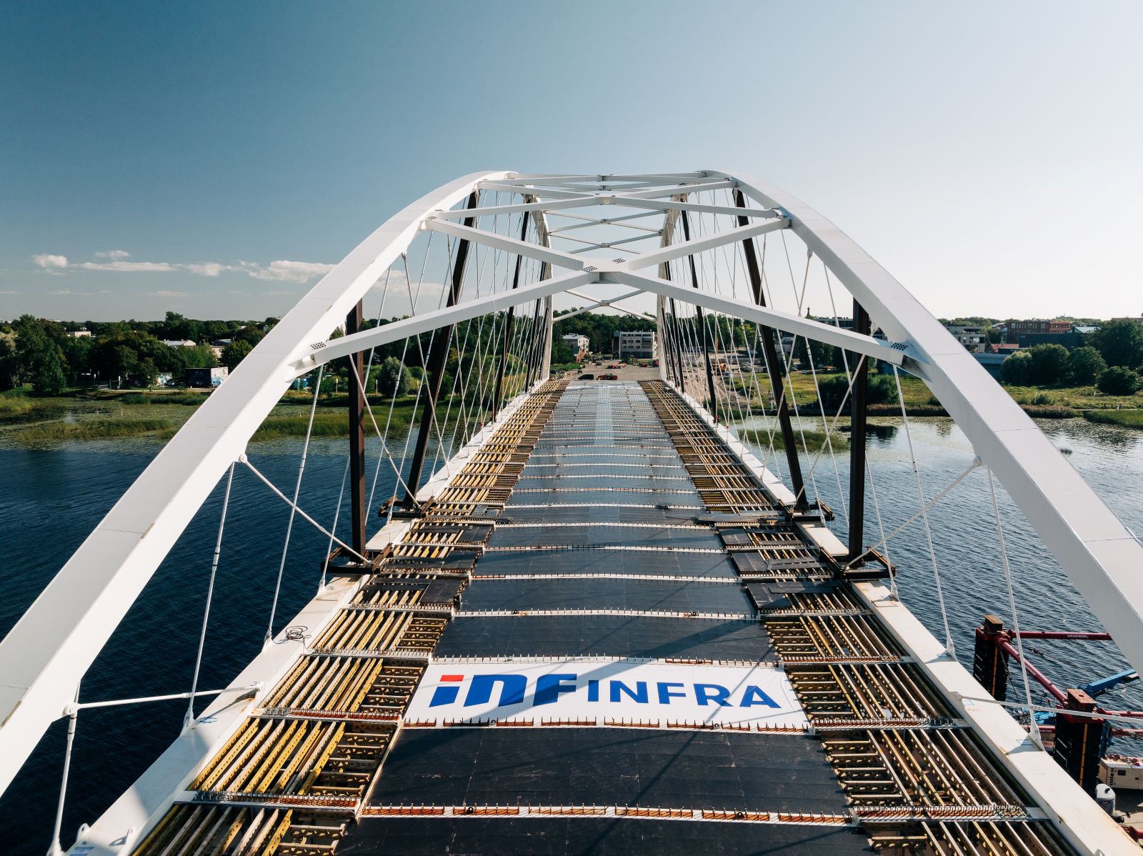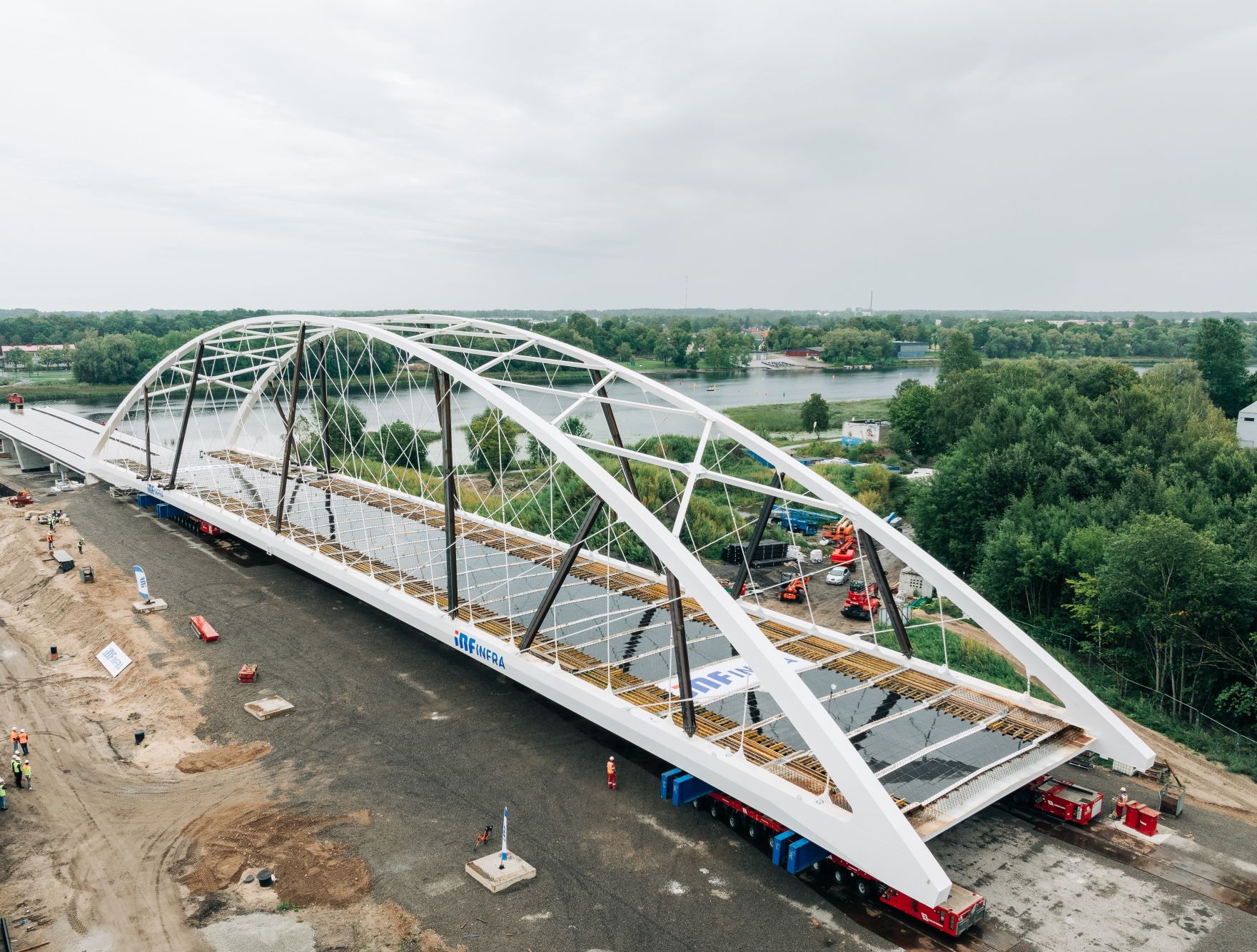 The new steel arch bridge is a colossus, weighing 950 tonnes. And with a span of no less than 140 metres, it is by far the longest bridge in Estonia. For the transport operation, the bridge has been reinforced with additional structures, bringing its total weight to almost 1,200 tonnes. The access bridge, over which the transport to the river takes place, was also reinforced for the occasion.