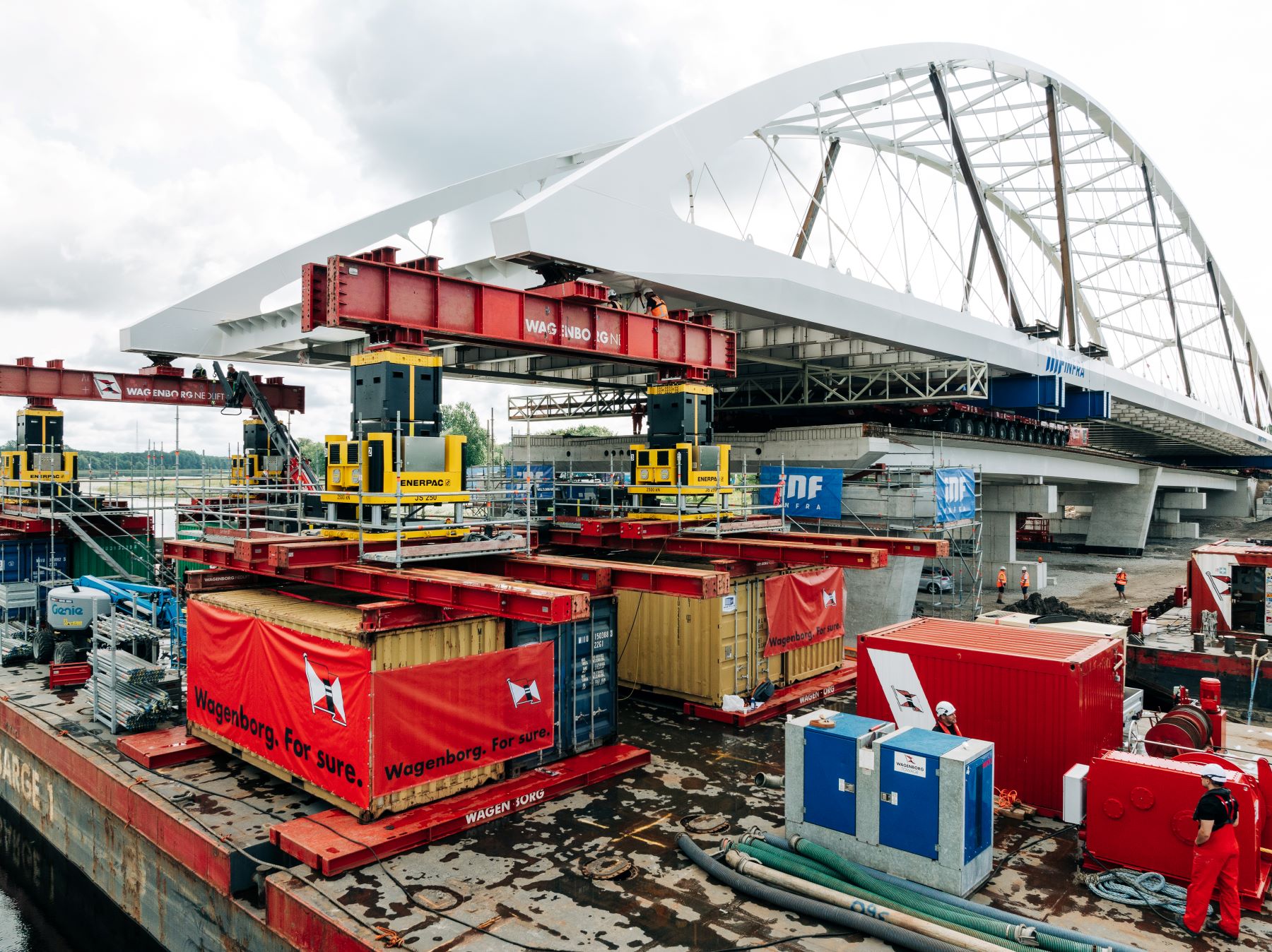 Together with the customer, Wagenborg Nedlift's engineers came up with an inventive transport and access operation for this record-breaking bridge, which took place in several phases: