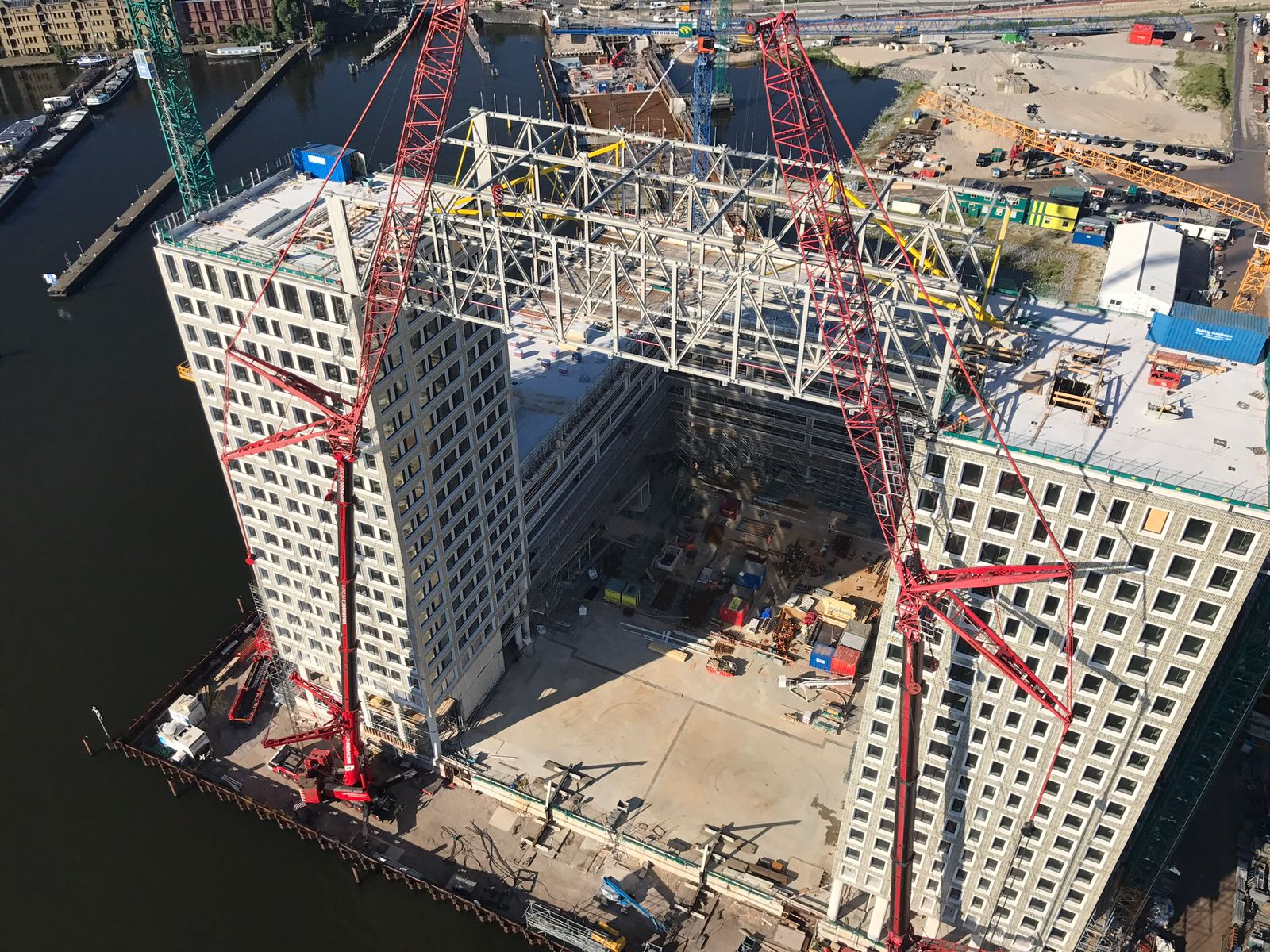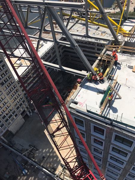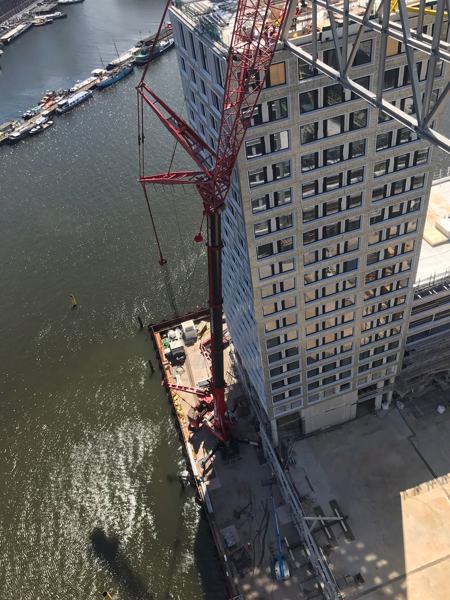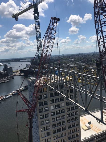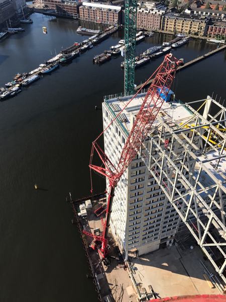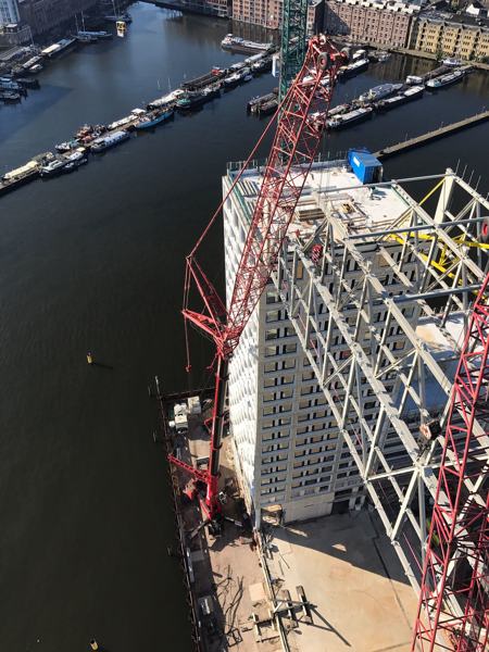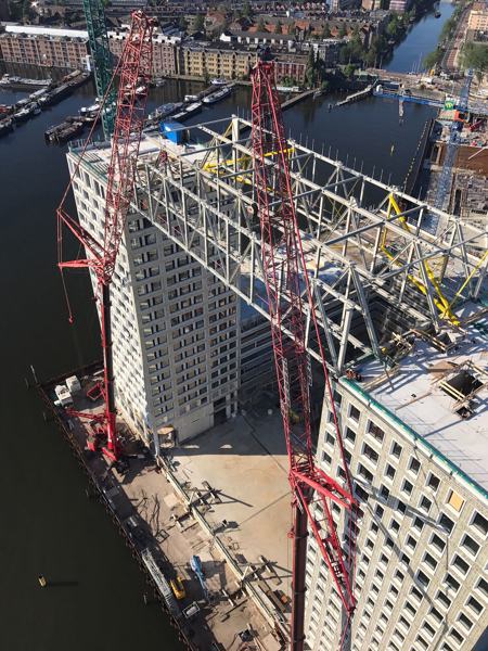 June 2017, the pinnacle of an intense preparation period: after being shipped over land and water by Wagenborg from Almelo to Amsterdam, the steel trusses were installed. Sadly the installation of the first truss had to be delayed because of the stormy winds. A setback for both those involved and interested, including the residents of the Silodam. On June 9 the time had finally come and Wagenborg was able to install the first truss.