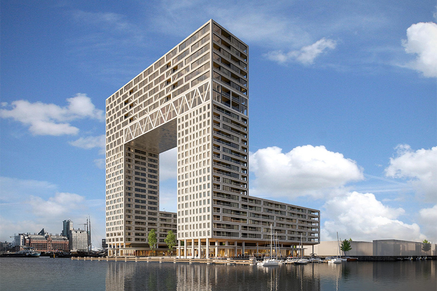 De Pontsteiger in Amsterdam is one of the largest and highest residential buildings in Amsterdam. An eyecatcher at the Amsterdam skyline, with a broad view on the IJ-river and the Houthaven area. Would you like to know more? Have a look at the website www.pontsteiger.nl.