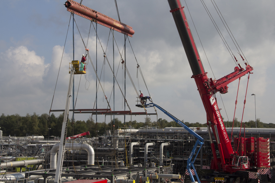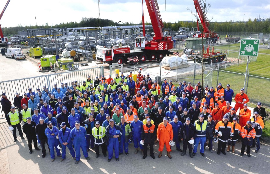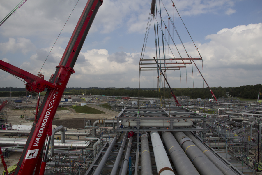 Previously, Wagenborg's largest cranes, including the 750-tonne crawler crane LR1750, were used to place new compressors including equipment, cooling benches, adsorbers and various columns at the UGS site. Moreover, to drill to new wells, the T-700 drilling rig was moved twice to and from the UGS site in collaboration with our sister company Wagenborg Foxdrill.