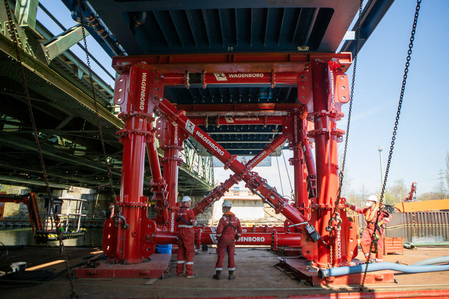 The engineers at Wagenborg Engineering came up with an ingenious solution to install the entire bridge on the abutments.