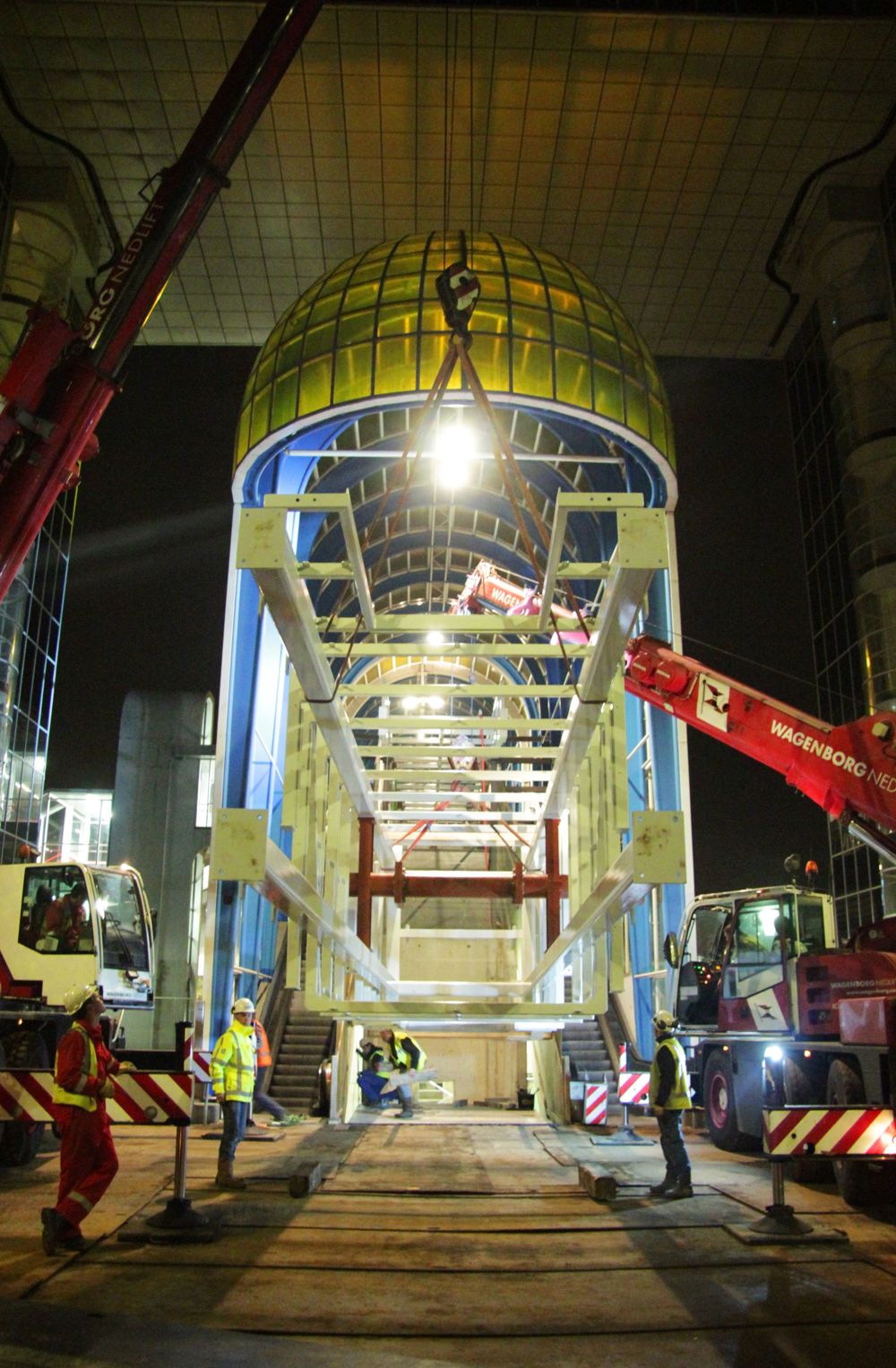 That involved some inching and pinching down to the centimetre, while the crane operators had to carry out this hoisting 'blind', i.e. following the instructions of the hoisting supervisor only.
