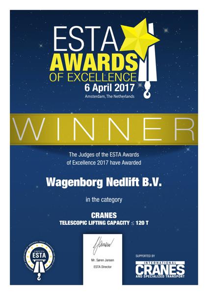 ESTA is the European trade association for the heavy transport, lifting and crane rental sector. ESTA represents the national trade associations in the sector. Every year ESTA Awards are presented for projects that stand out in the field of technical ingenuity, innovation or safety.