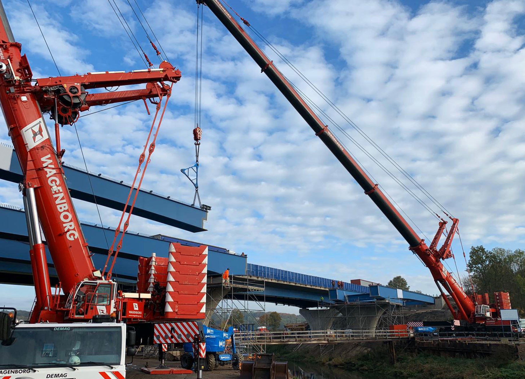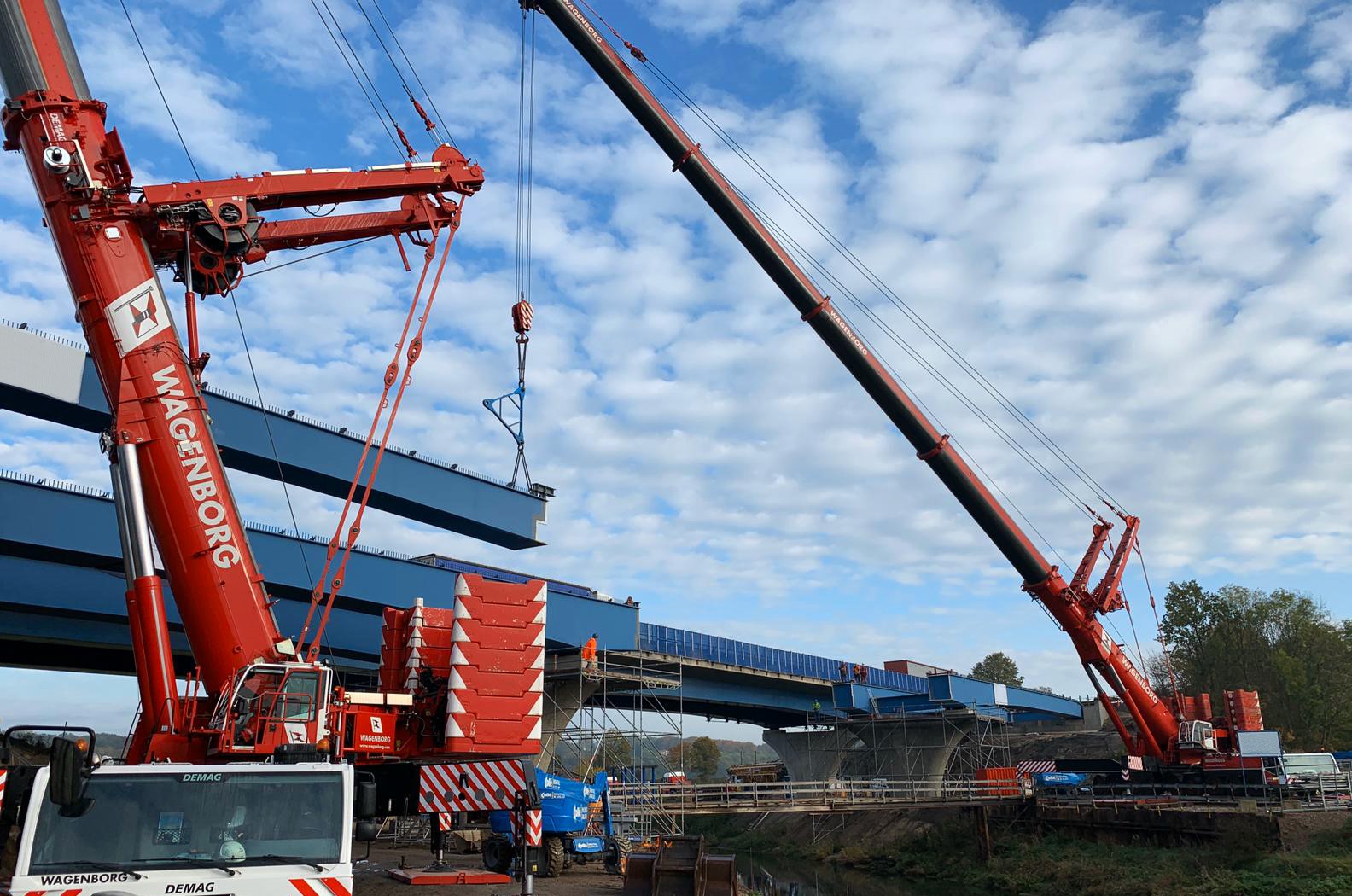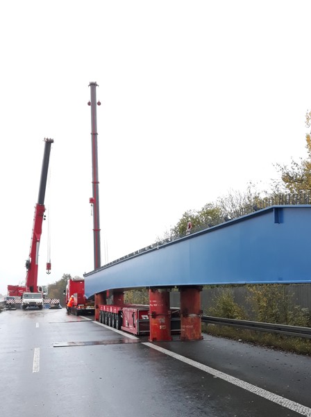 The Werrebrücke across the small river Löhne was reinforced with six heavy steel girders, the four heaviest of which were over 42 metres long and weighing 85 tonnes each(!). Transport and lifting these giants was an interesting challenge for the specialists from Wagenborg Nedlift.