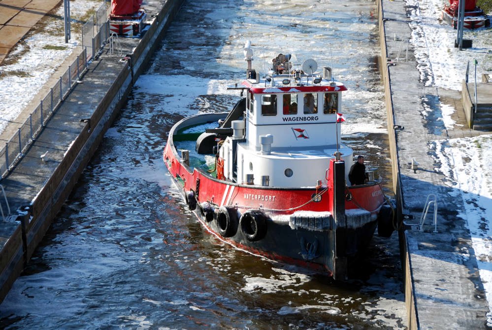 But Wagenborg wouldn't be Wagenborg if they didn't come up with a solution. The Waterpoort icebreaker of Wagenborg Towage was called in to help make the shipping route in the Twentekanaal passable again.
