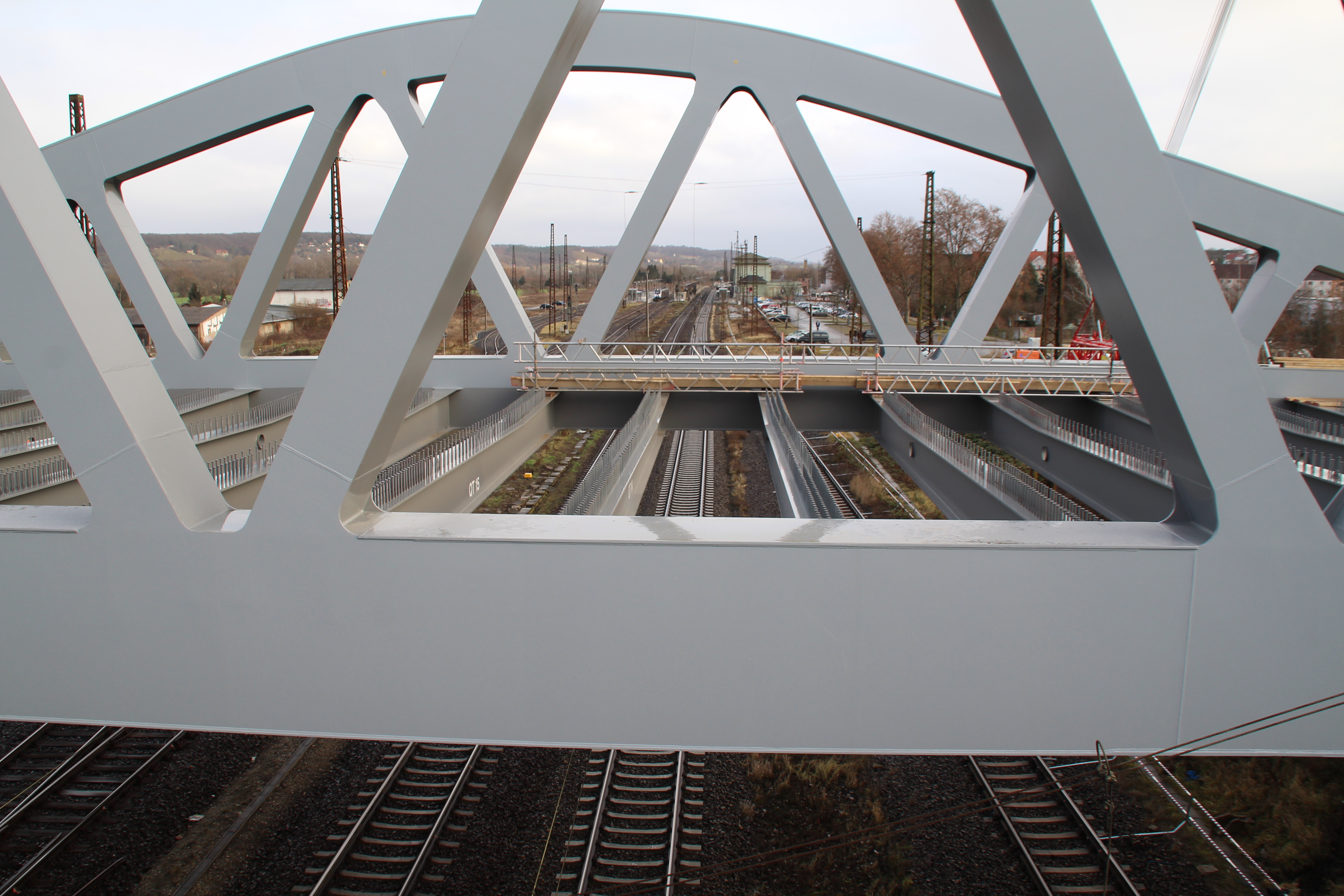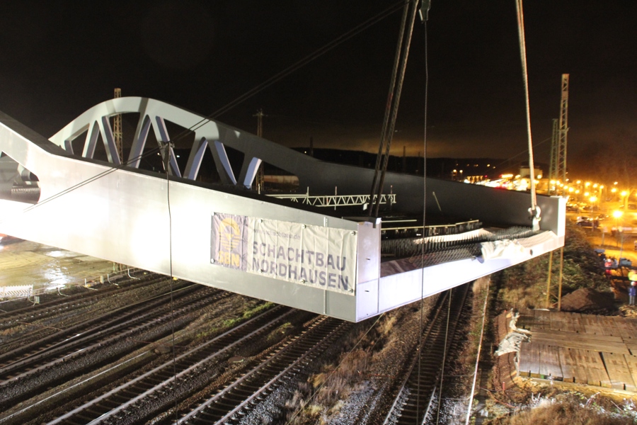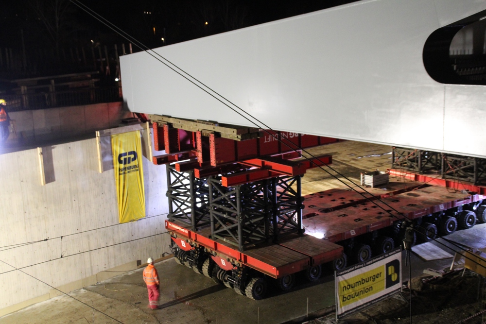 Near the Naumburg railwaystation, a bridge crossing the railway tracks had to be installed. Not just any bridge but one weighing no less than 800 tonnes and nearly 74 metres long! The giant bridge spans six railway tracks, right next to the train station of Naumburg.