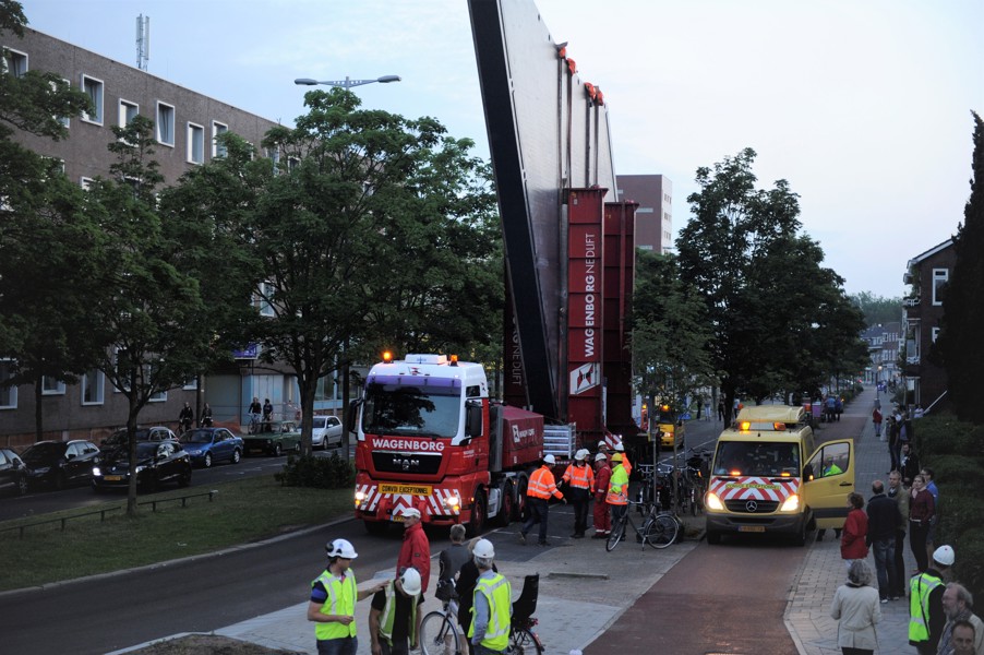 The final kilometre from the Balije bridge point of arrival to the Kruisvaart bridge construction site turned out not to be that easy. There were many trees and other obstacles on the route through the busy city centre. How to prevent those beautiful trees from being pruned?