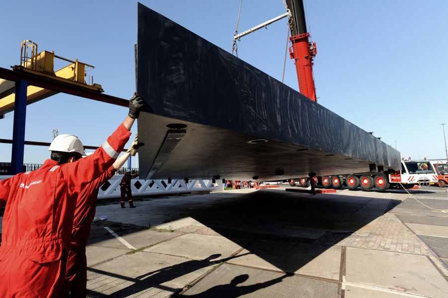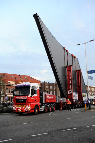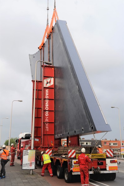 The specialists from Wagenborg Engineering came up with a unique solution: transport the bridge deck in a vertical position.