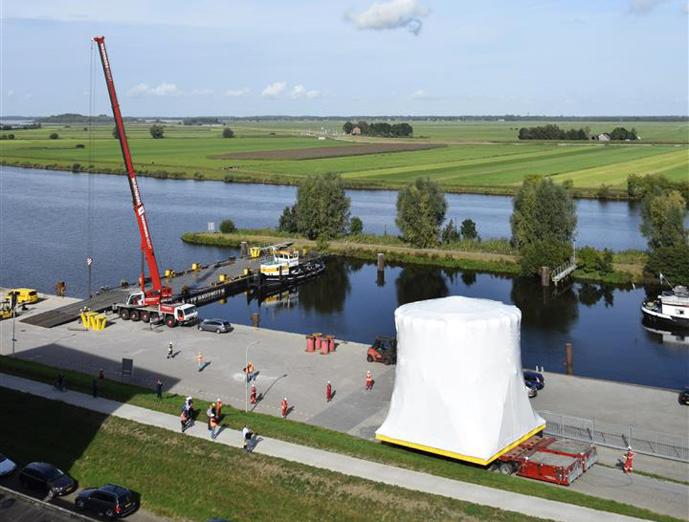 "All end products that are transported further by water must indeed cross this so-called 'bump'. This poses an extra challenge during transport work, but in practice we manage to get our end products across the dike, partly thanks to our collaboration with Wagenborg Nedlift. No matter how large and heavy the products are, it works every time without any problems", Henk Breman says. "Still, there are a number of stumbling blocks with regard to transport, which we have addressed and solved in the meantime. For example, we have reinforced the quay and widened the dike access," Sander Brouwer adds. "In these processes Wagenborg Nedlift has played an advisory role, because Wagenborg knows the situation here very well". Henk Breman adds with a smile: "Michel even knows the gradients here". "That's right", Michel de Jong confirms. "Still, before every project, we look at the situation again because every object is different. We must remain strict in this respect".