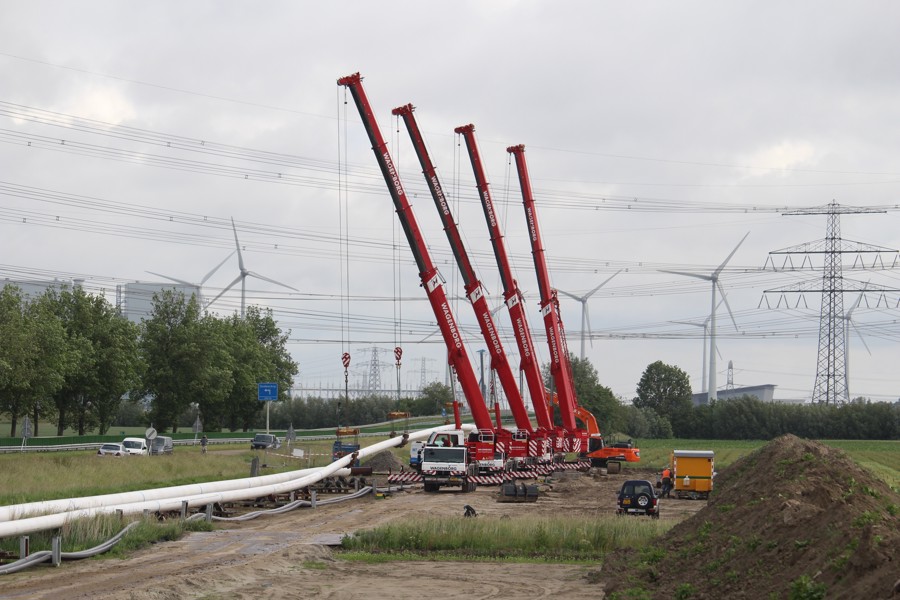 “This seems like a simple hoisting operation, because drilling work like this does not involve any real lifting,” adds Kevin Medendorp, work planner at Wagenborg Nedlift. “But it is anything but simple: as the pipe is being withdrawn, it must constantly be guided into the correct position and this requires good coordination between the operators of the six cranes that are simultaneously hoisting the pipe.