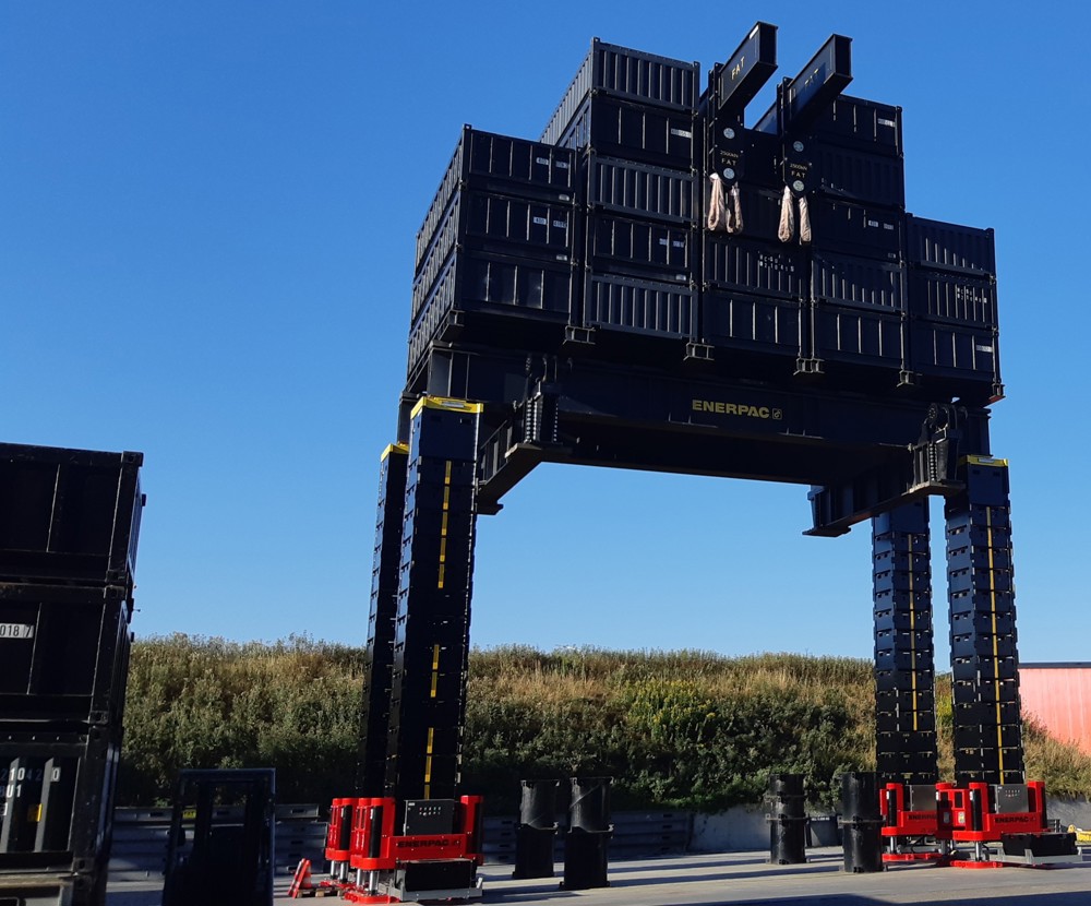 Mit dem neuen Stufenhubsystem können Schwerlasten mit einem Gewicht von bis zu 3200 Tonnen mühelos aufgebockt werden. Die neue Anlage hat einen Höhenbereich von bis zu 20 Metern und ist ausgestattet mit sogenannten `adjustable top-barrels‘: einstellbaren oberen Trommel, inklusive einen Zylinder. Dies gewährleistet eine einfache Ausrichtung während eines Hebevorgangs und macht das System flexibel und effizient einsetzbar. Das Leistungsspektrum in Kombination mit den einstellbaren Top-Barrels macht dieses neue System einzigartig in seiner Art.