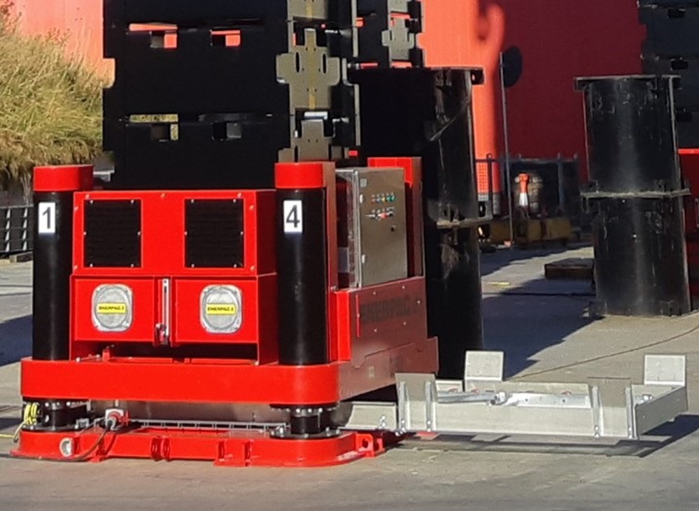 Das neue Stufenhubsystem verwendet Stahlkästen statt Hublastbalken. Diese Kästen werden an der Unterseite der Pressenunit eingeschoben. So müssen die Mitarbeiter während des Hebevorgangs nicht in Höhen arbeiten, was die Sicherheit erhöht. Außerdem ist das gesamte System computergesteuert und vollständig elektrisch angetrieben, was sich nahtlos in die Nachhaltigkeitsstrategie von Wagenborg und seinen Partnern einfügt.