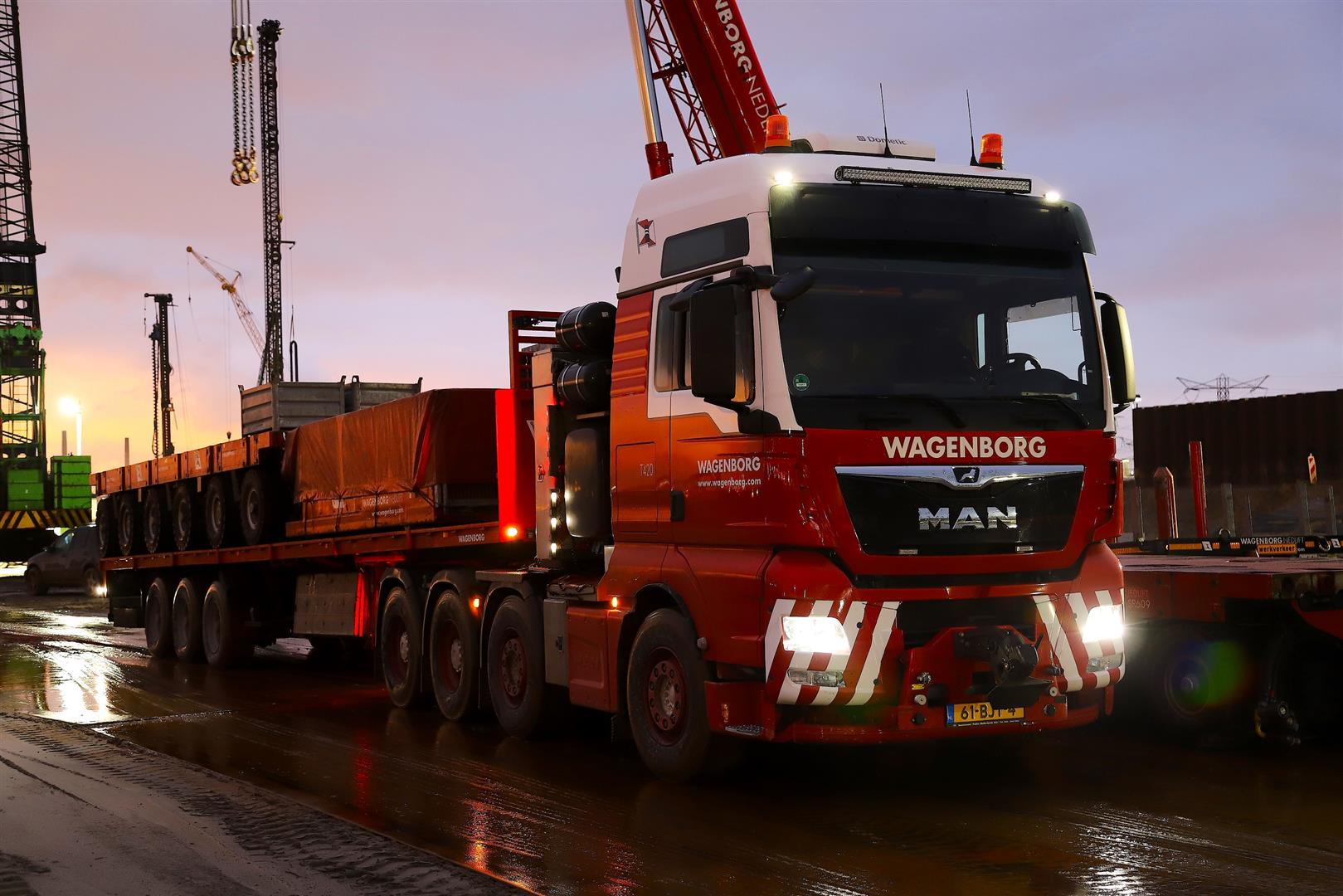 Mit einem 12-achsigen SPMT unter dem schweren Teil und einem 6-achsigen SPMT unter dem leichteren Teil wurde die richtige Transportkonfiguration gebildet, ausgestattet mit zwei Power Pack Units. Mithilfe eines hydraulischen Trailers wurde das MV-Gerüst nach oben gedrückt, so dass es über dem Boden schwebte. Dann wurde das Ganze vorwärts gerollt. In Höhe der neuen Bahn, 110 Zentimeter weiter oben, wurden die SPMT-Achsen um 90 Grad gedreht, um ein seitliches Versetzen zu ermöglichen. Nach Anleitung seines spezialisierten Kollegen manövrierte der Wagenborg-Operator das Ganze über die neue Bahn, um anschließend mithilfe der Trailerhydraulik das MV-Gerüst auf seine neue Bahn zu setzen.
