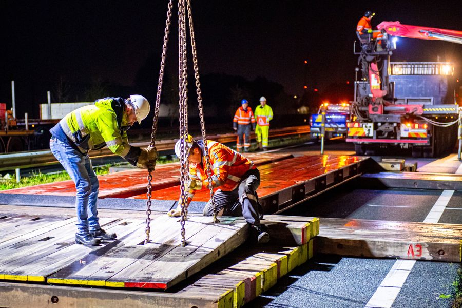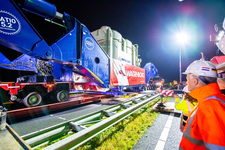 Schon ein paar Tage zuvor waren die Transformatoren per Ponton vom Fabrikstandort in Nijmegen angeliefert worden. Auch der Transportweg war vorbereitet: Laternenpfähle wurden entfernt und Fahrplatten ausgelegt, die Sperrung der N33 über Nacht wurde vorbereitet und das gesamte Projektteam erhielt die letzte Anweisungen.