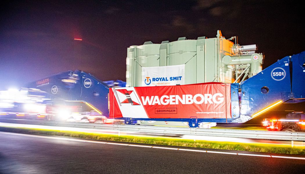 Am Donnerstag, dem 21. Oktober, war es dann soweit: der erste Querregeltransformator machte sich vom De Zwaaikom in Veendam zur Hochspannungsstation Meeden auf den Weg.