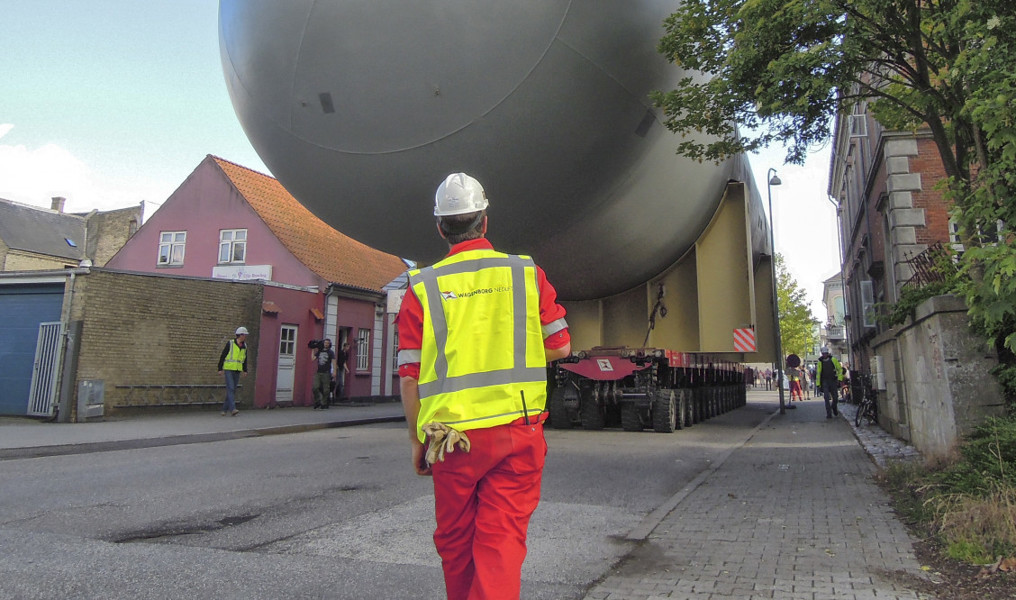 Die Route vom Hafen zum neuen Terminal führte quer durch das idyllische Stadtzentrum von Fredericia. Gar nicht so leicht, hier die am besten geeignete Route zu ermitteln und die Fahrt vorzubereiten! Die Spezialisten von Wagenborg Nedlift ermittelten und dokumentierten jede Ampel, jedes Verkehrsschild, jeden Baum, jeden Pfahl und jedes andere Hindernis auf der Strecke, um dieses (vorübergehend) zu beseitigen.