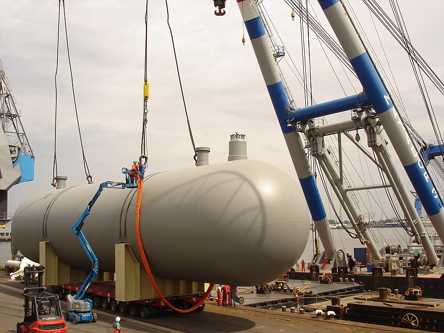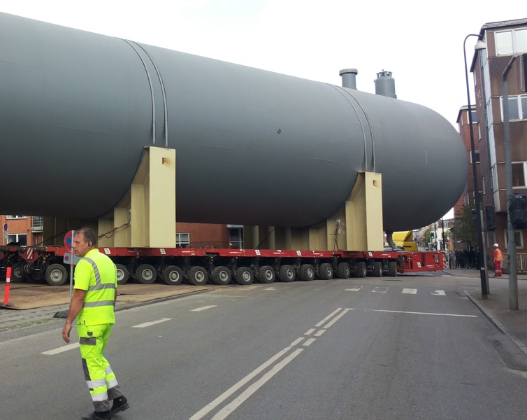Beim Fabrikanten in Willebroek wurden die Tanks über eine RORO-Operation (Roll on Roll off) auf Pontons geladen, mit Zielort Rotterdam. Unter Einsatz des Schwimmkrans „Matador 3“ wurden die riesengroßen Tanks an der Anlegestelle ausgeladen. Mithilfe eines Schwerlastschiffes wurden sie in Rotterdam wieder an Bord genommen, auf dem Meer nach Dänemark verschifft und im Hafen von Fredericia ausgeladen.