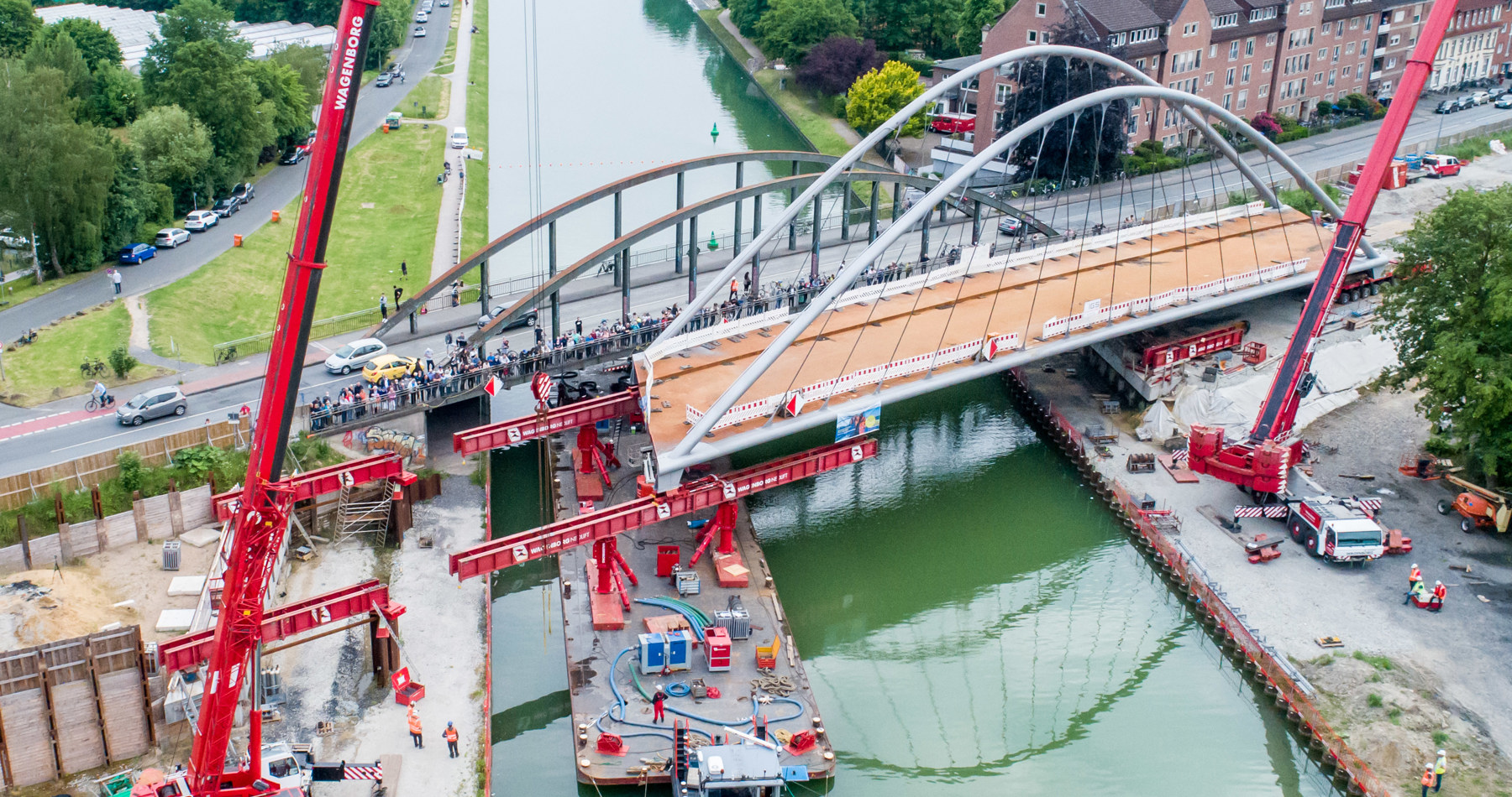 Infra projects face particular challenges when it comes to heavy transport and lifting. For how can a bridge weighing hundreds of tonnes be placed over a canal? Or an underpass put in place during a railway Blockade? And how does a bridge deck get through a narrow canal to reach its destination?