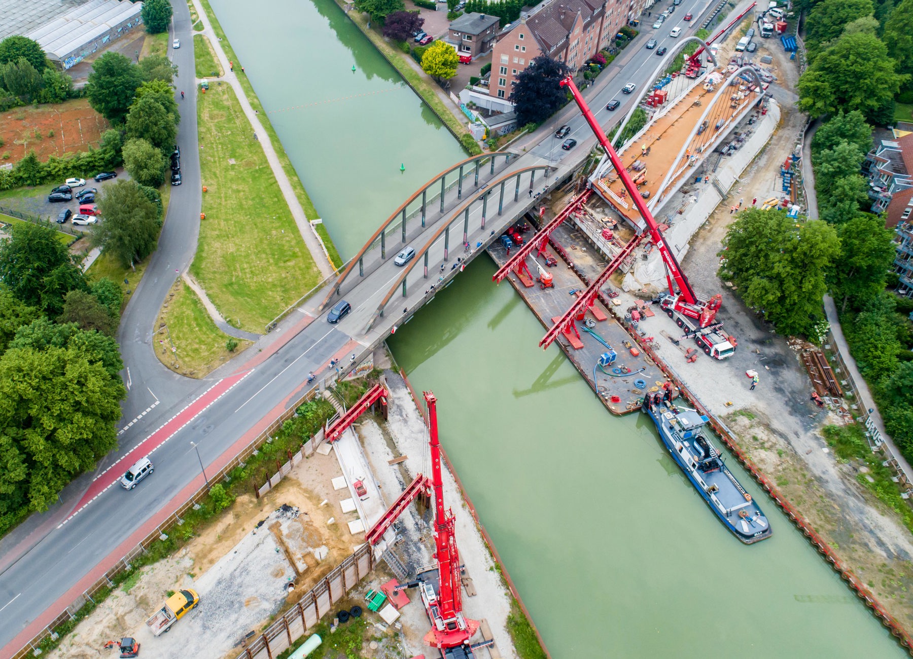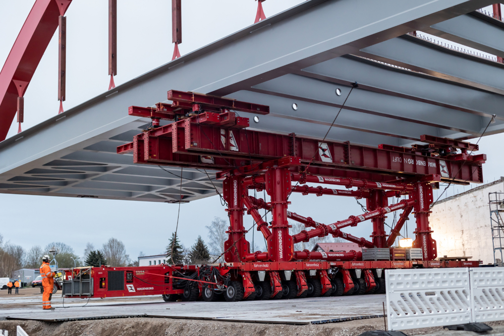 The second Award was won in the 'Combined techniques' category for the mega move in Münster. Here a special arch bridge with a length of more than 67 metres and weighing more than 550 tonnes was installed. For this mega move, the Wagenborg Nedlift team brought a massive amount of equipment to the site, including a pontoon, the Modular Support System, support beams, mobile cranes, SPMTs, climbing jacks and a sliding system. A special combination of horizontal and vertical conveyance techniques, conceived by the engineers at Wagenborg Engineering.