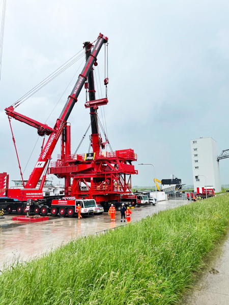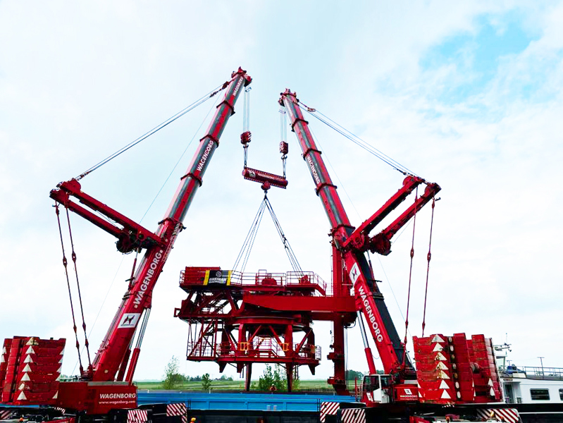 Wagenborg Nedlift was engaged to weigh the ABIT tool prior to transport and to determine its centre of gravity. Wagenborg also handled the local transport, conveying the tool from the assembly hall to the industrial wharf in Genemuiden using SPMTs, then lifting it and placing it on board a barge. The latter task was accomplished using two 500-ton mobile cranes.