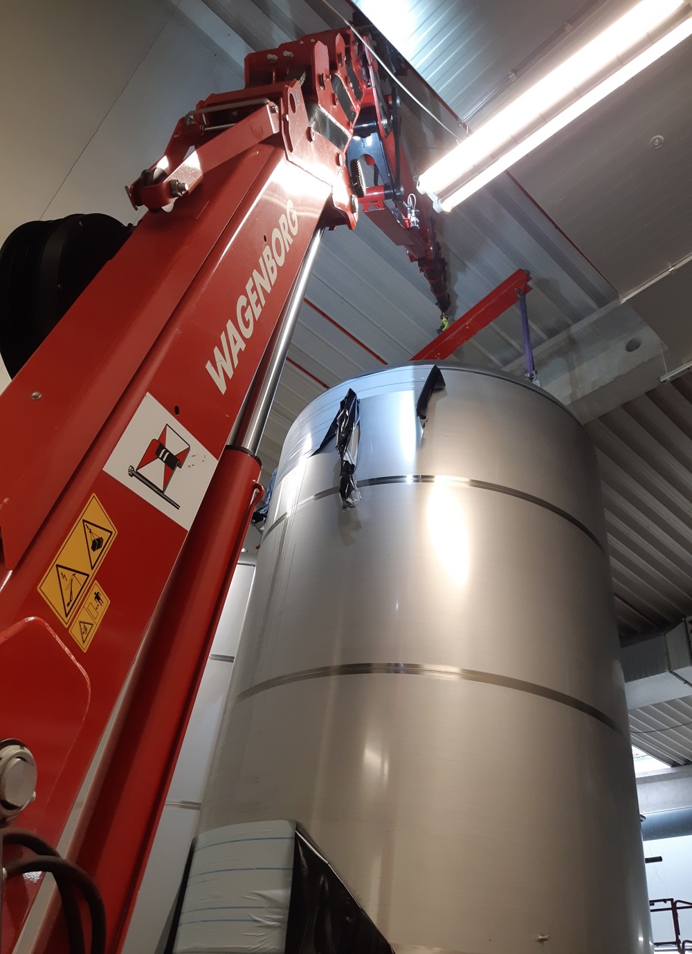 The C30 carefully lifted the tanks into a vertical position and placed them on the foundation. With just 10 centimetres between the top of the crane and the roof of the building, this was a task that demanded some very high precision on the part of the operator!