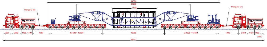 This special challenge asked for a unique transport solution from Wagenborg Nedlift's transport specialists: a girder bridge. This is a very special transport construction that allows heavy loads to 'suspend' between two side beams, transporting them very low above the ground.