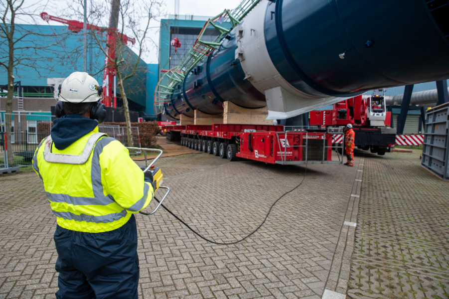 Construction of the new CO2 capture plant has been under way since spring 2023. But only recently, the project hit the news. That was when the giant components for the new plant, which originated in Estonia, were transported right through Hengelo. With an item length of up to 43 metres, this was a challenging job for Wagenborg Nedlift's transport team.
