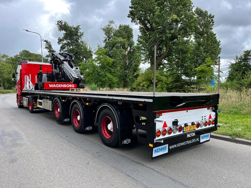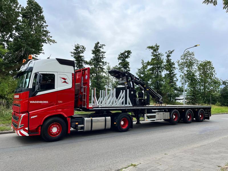 This Volvo FH460 Turbo Compound has a fresh paint job and a new house style. A truck with a well-designed cabin and plenty of storage space. This 460-hp FH is very powerful and, thanks to the latest software, also contributes to our goal of reducing CO2 emissions. It also combines well with the 3-axle Pacton. With plenty of room for the extendable KINETIC 21R-3X self-loading crane. We can transport a lot of driving plates again!