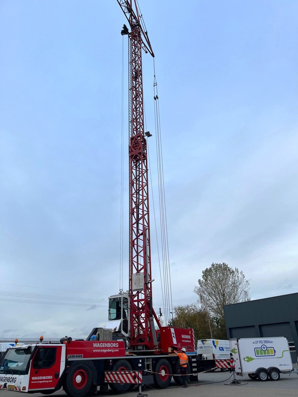 'With the latest generation of mobile tower cranes from Wagenborg Nedlift, we can lift with zero emissions,' says Pim. These machines are equipped with state-of-the-art engines to drive to the job site. Once there, they plug into the socket.