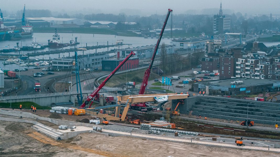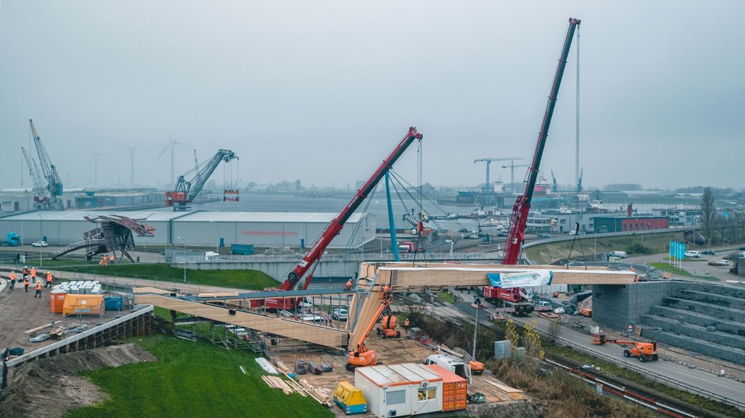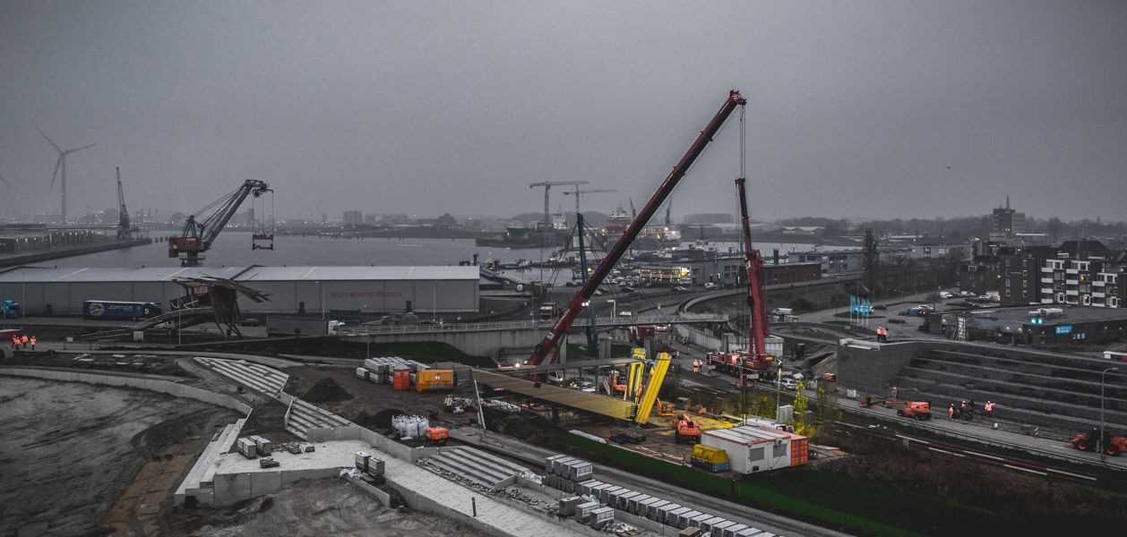 Last week, the big moment finally arrived: the new bridge could be put in place. To achieve this, Wagenborg Nedlift deployed two mobile cranes, one 300-ton and one 400-ton. The bridge was transported in its entirety from Wagenborg Stevedoring to right under the crane hooks. Lifting it into place happened exactly according to plan and many spectators watched the whole undertaking via live stream.