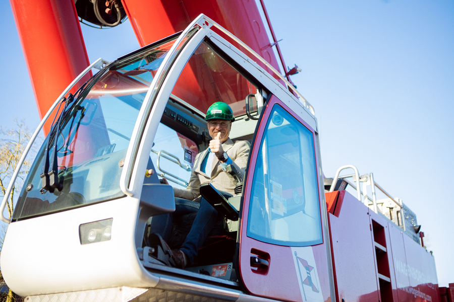 Under supervision of the crane driver, councillor Erik van Beurden was given the honour to carry out this symbolic act.