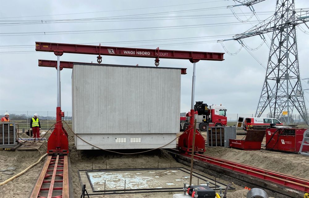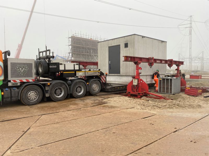 A total of 10 transformer cabins were transported to Vierverlaten. Once they had arrived at the location, in 9 out of 10 cases the transformer cabins were unloaded and put on their foundation using a mobile crane.
