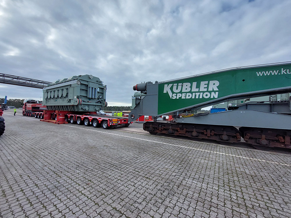 Once on the main route to the high-voltage substation, the huge transport continued its journey unhindered. At the final destination, the 500 tonne lifting gantry was ready to unload the transformer and place it on its foundation. Mission accomplished!