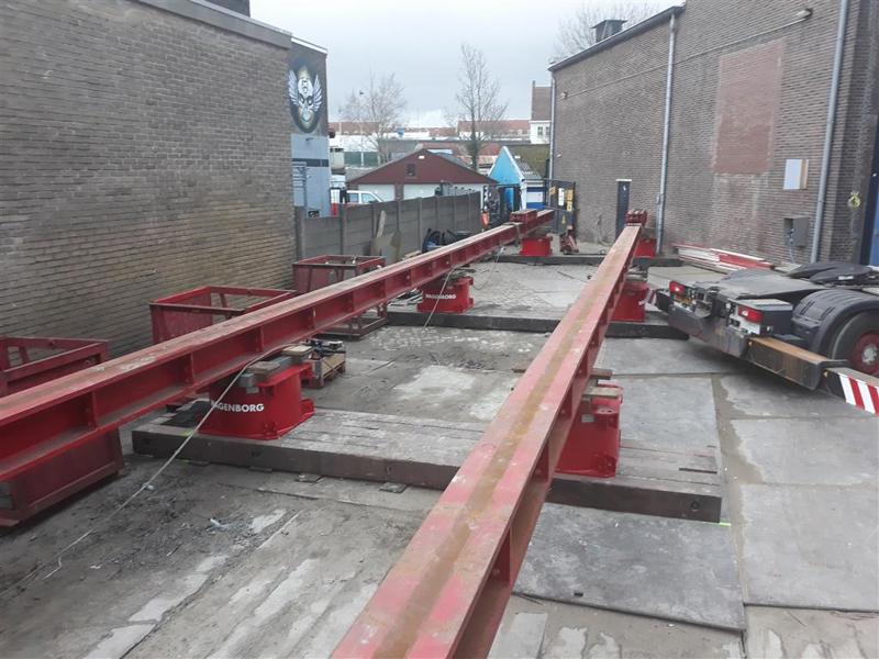 The mobile crane that is used for this purpose would normally be able to remove the transformer from the lorry and place it directly in the station. But this is not possible in this case due to the limited space. So a combination of conveyance techniques were used.