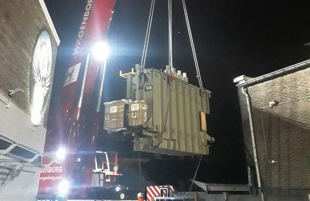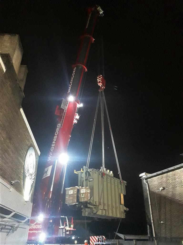 And that especially applies to installation of three transformers, each one weighing nearly 70 tonnes. These are the transformers that convert high-voltage electricity to a lower voltage. Because there is too much traffic in the city during the day, the transformers are transported to their new home late at night and unloaded on site.
