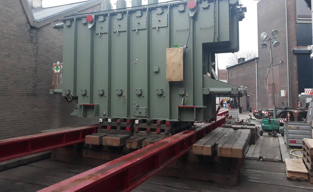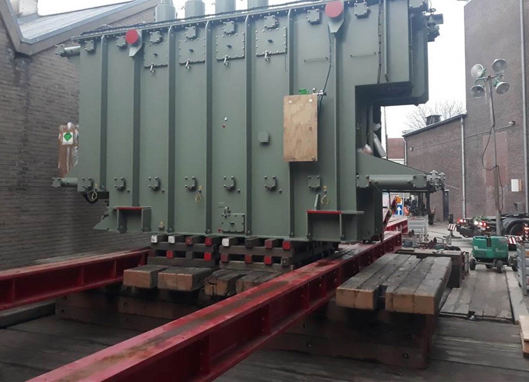 Wagenborg Nedlift’s 500-tonne mobile crane unloaded the transformers from the lorries and placed them on a skidding track. The last bit of horizontal transport prior to entering the transformer station was carried out with the aid of a skidding operation. The transformers were left in this spot for a little while so that Liander's transformer specialists could disassemble them. Then they were slid into the transformer cells.