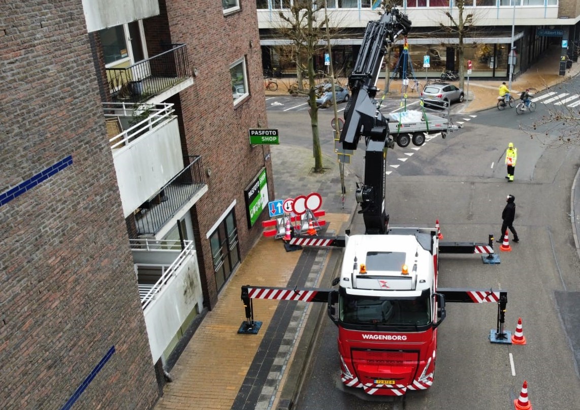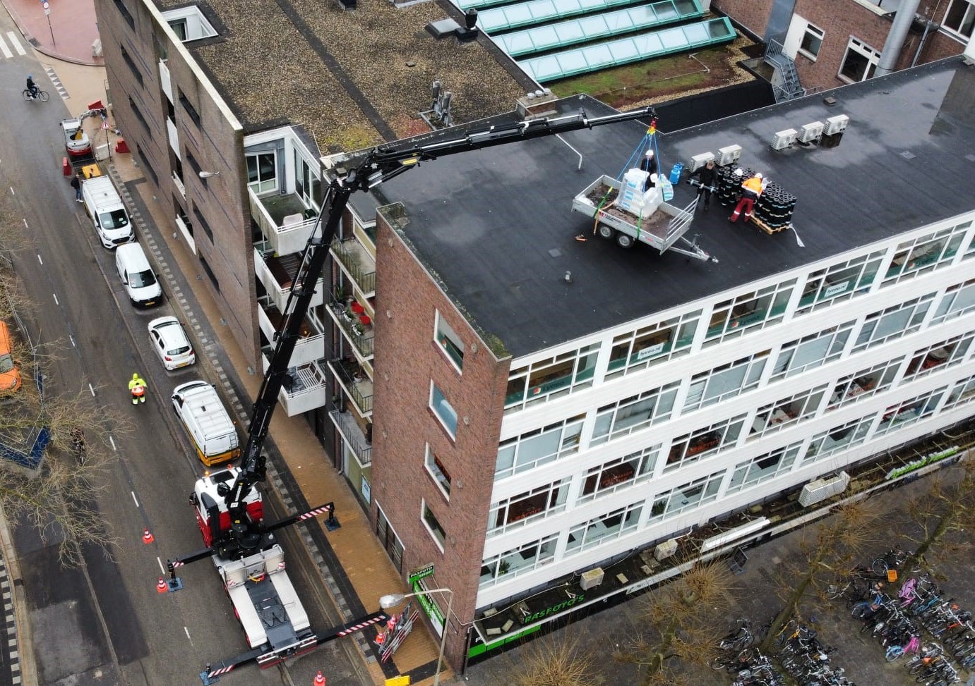 The newest acquisition was used immediately the next day. At a construction site close to the Martini tower, right in the centre of Groningen city, Wagenborg Nedlift's team was tasked with placing building supplies on the roof. A perfect job for Johannes and his new knuckleboom crane. Thanks to the fast start-up time and limited set-up space required, the lifting work was performed safely, efficiently and without any nuisance to the neighbourhood.