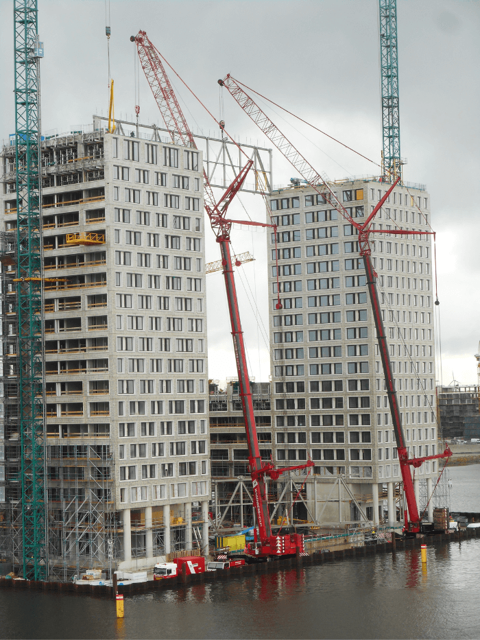 Om de spanten (met een lengte tot 48,5 meter en een gewicht tot 78 ton per stuk) te plaatsen heeft Wagenborg Nedlift twee 500 tons mobiele telescoopkranen met jib ingezet. De Pontsteiger ligt aan het IJ, een prachtige, maar zeer krappe werklocatie: de kranen moesten beiden tussen het gebouw zelf en de damwand worden geplaatst. Voor Wagenborg Nedlift echter geen probleem, maar een interessante uitdaging.