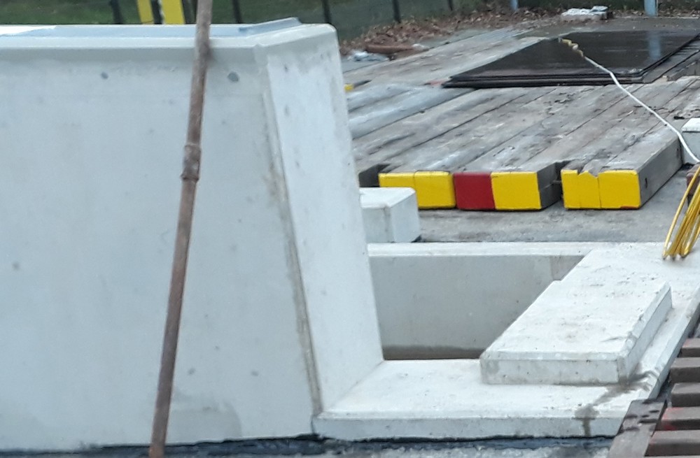 Ook op de beoogde opstelplaats voor de 700 tons mobiele kraan, die de slugcatcher op fundatie moest zetten, stonden al betonpoeren. Wat nu?