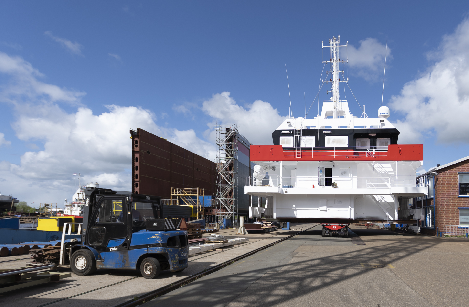 At the Royal Niestern Sander shipyard, Wagenborg has installed the bridge deck section of Easymax 2 at the quay side. Yard number 851 for Royal Wagenborg and affiliated partners is the second vessel of the type Easymax.