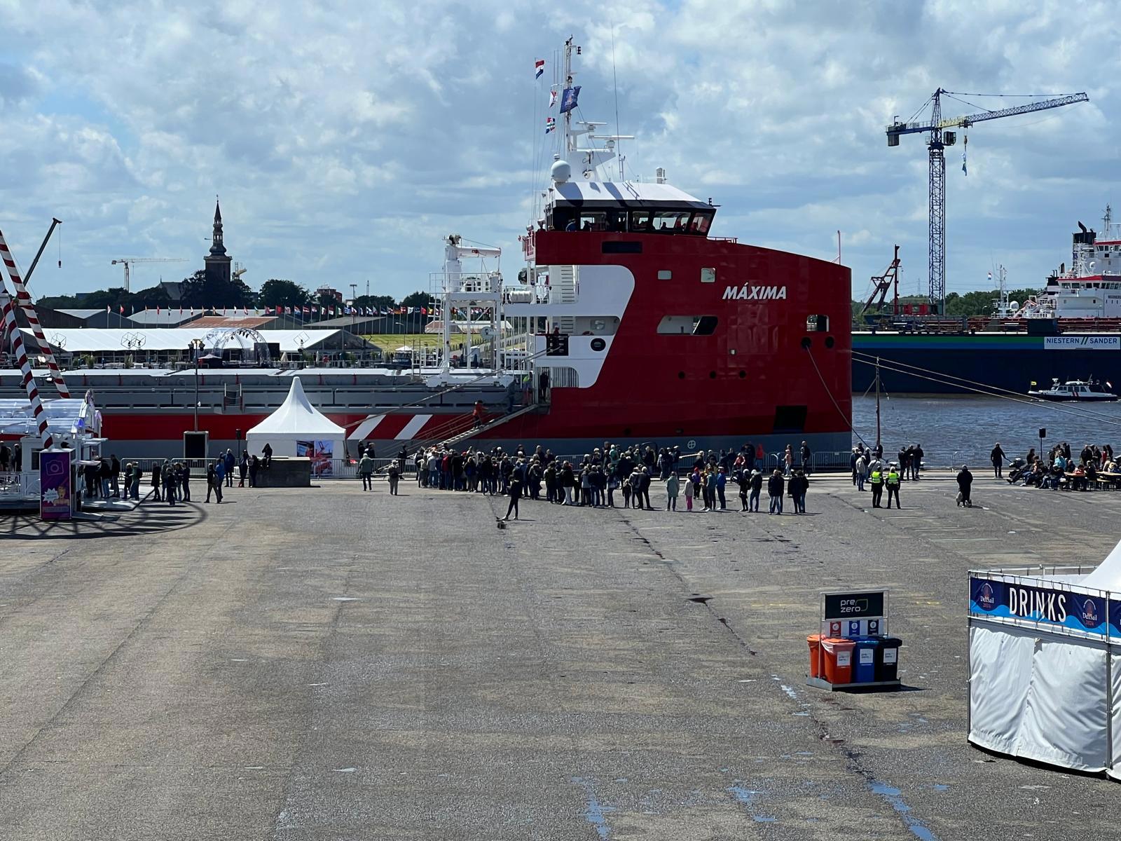 The highlight during Delfsail was the arrival of Queen Màxima at Royal Wagenborg on Friday 14 June, who christened the 'Máxima' and the 'Alexia' in a spectacular way. For this, she performed the christening of the 'Alexia' uniquely by drone. During the christening of the 'Máxima', the ship was moored at the Wagenborg terminal, where some 2,000 invited guests on the Wagenborg premises and hundreds of interested people on the quays witnessed a dazzling ceremony via a livestream.