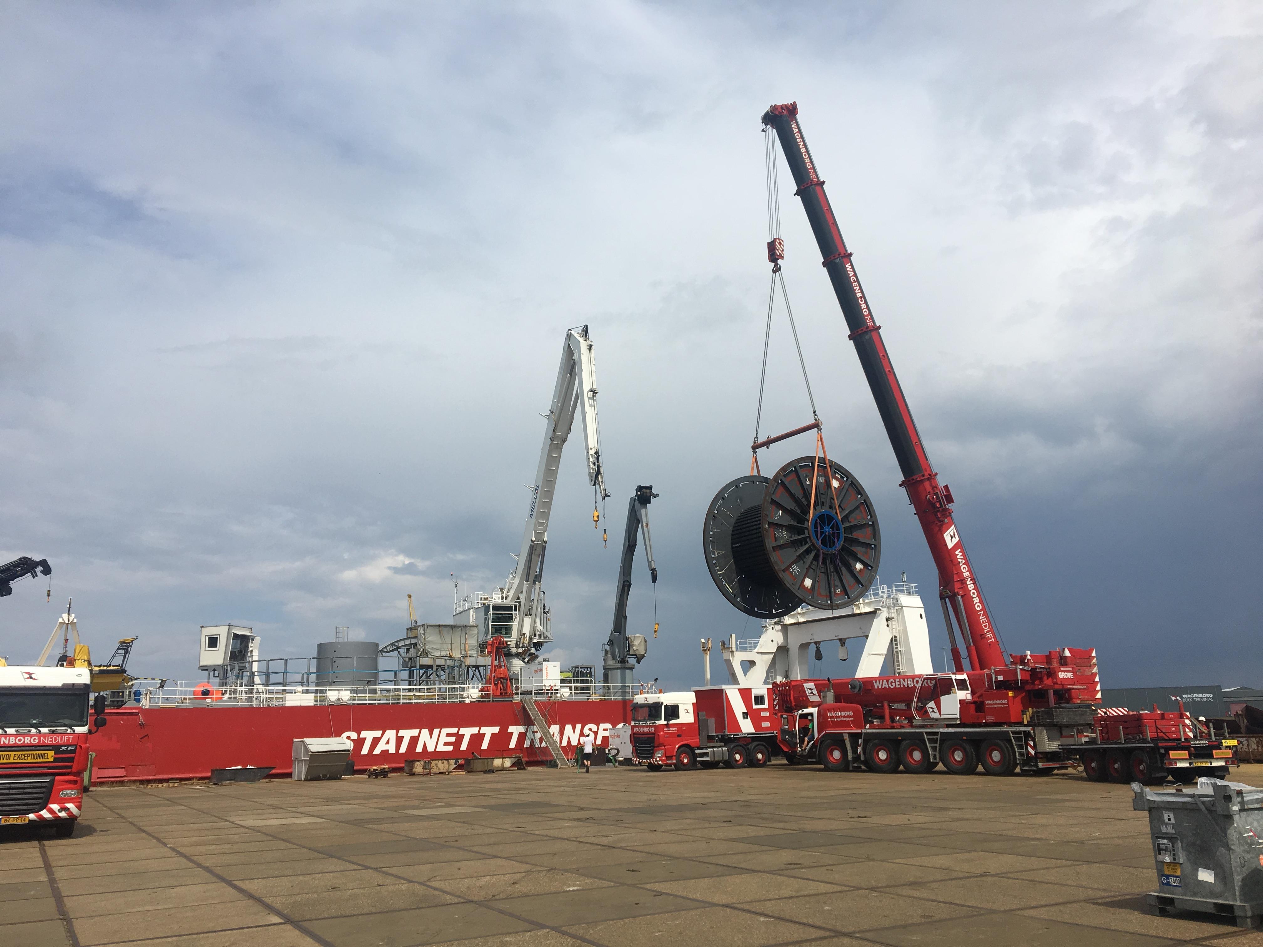 The vessel, measuring 87.35 m in length, was mobilized at the beginning of June to start work for NKT on the Nordlink KPG22 project. For this mobilization, Niestern Sander has manufactured large platforms, cable chutes and cable guide frames in its workshop. Subsequently, these were all placed on board at the dock location with the assistance of several mobile craned of Wagenborg Nedlift and a pontoon of Wagenborg Towage. After the cable laying vessel was equipped with the necessary equipment, she left Delfzijl.