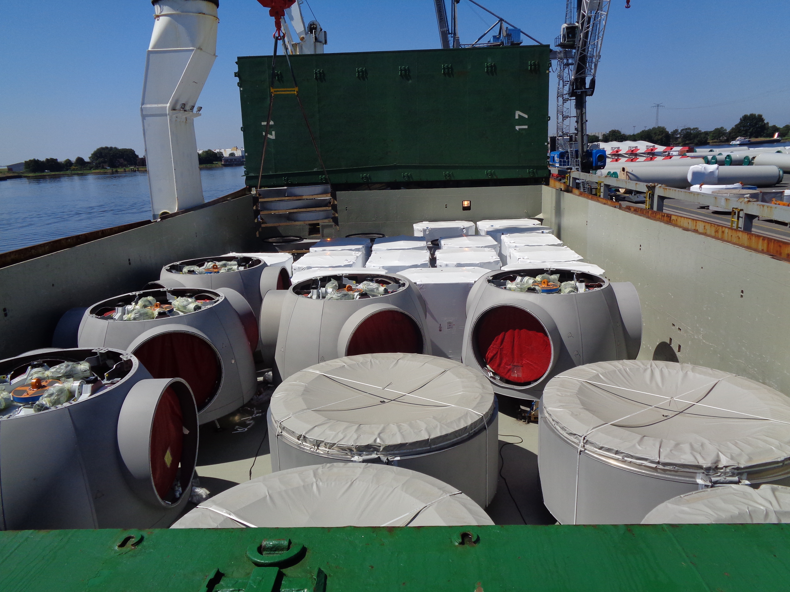 Recently the m.v. Amstelborg arrived fully loaded with wind turbine components at Thunder Bay in Canada after an Atlantic crossing.